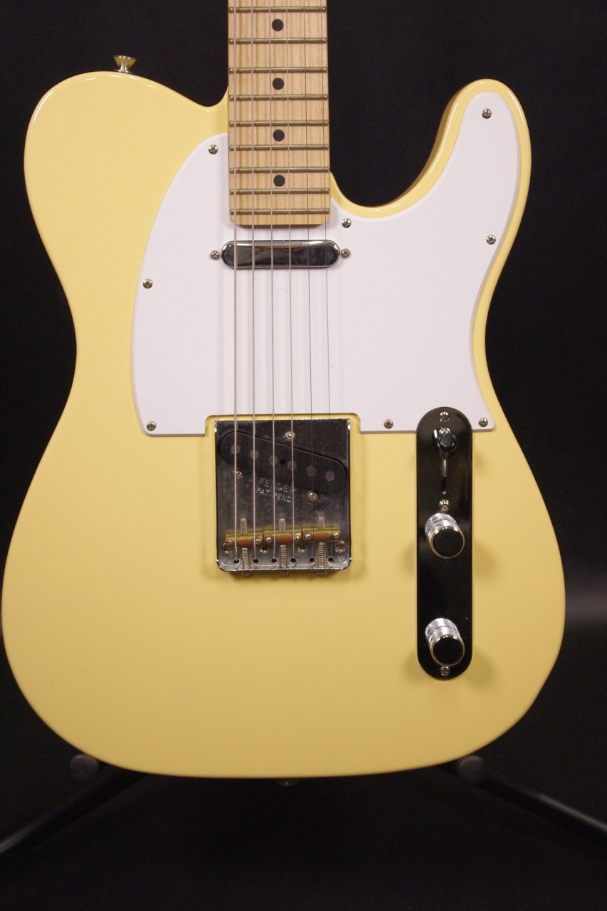 コストパフォーマンスに優れたフェンダー テレキャスターが入荷!!ボディはアルダー、指板とネックはメイプル材を採用、カリフォルニア州 コロナ工場製でビンテージスタイルに新しい性能を加えた仕様で扱いやすいモデルです!2019年に生産された個体でトーンポットに不具合が生じていたためポットのみ交換、細かい傷、使用感はありますが全体的に綺麗でコンディションも優れています。ペグ、ピックガード、ピックアップはオリジナルで残っています。定番のビンテージホワイトカラーで飽きません。ナット幅は約42mmのモダンCシェイプを採用、ネックのアングルも理想的でヘッド側からのロッド調整も問題なく機能します。フレットの減りも少なく今後も安心いただけます。弦高もハイポジションまで押さえやすい高さで調整していますがお好みに合せた微調整にもお応えいたします。テレキャスらしいキレのよいダイナミックなサウンドで気持ちよく抜けてくれます!是非この機会にお試しください。フェンダー純正ハードケース付き!!!