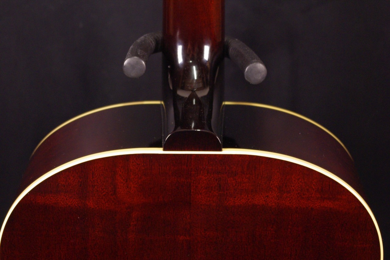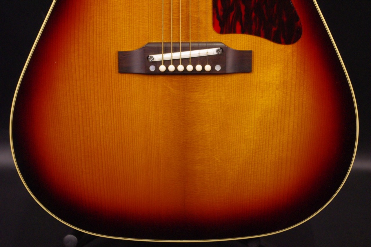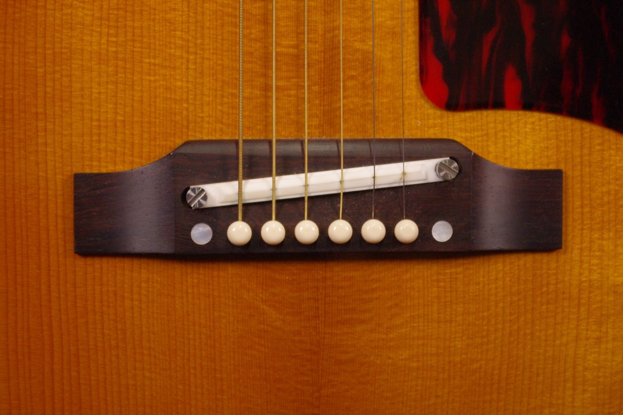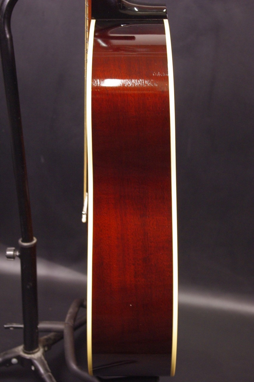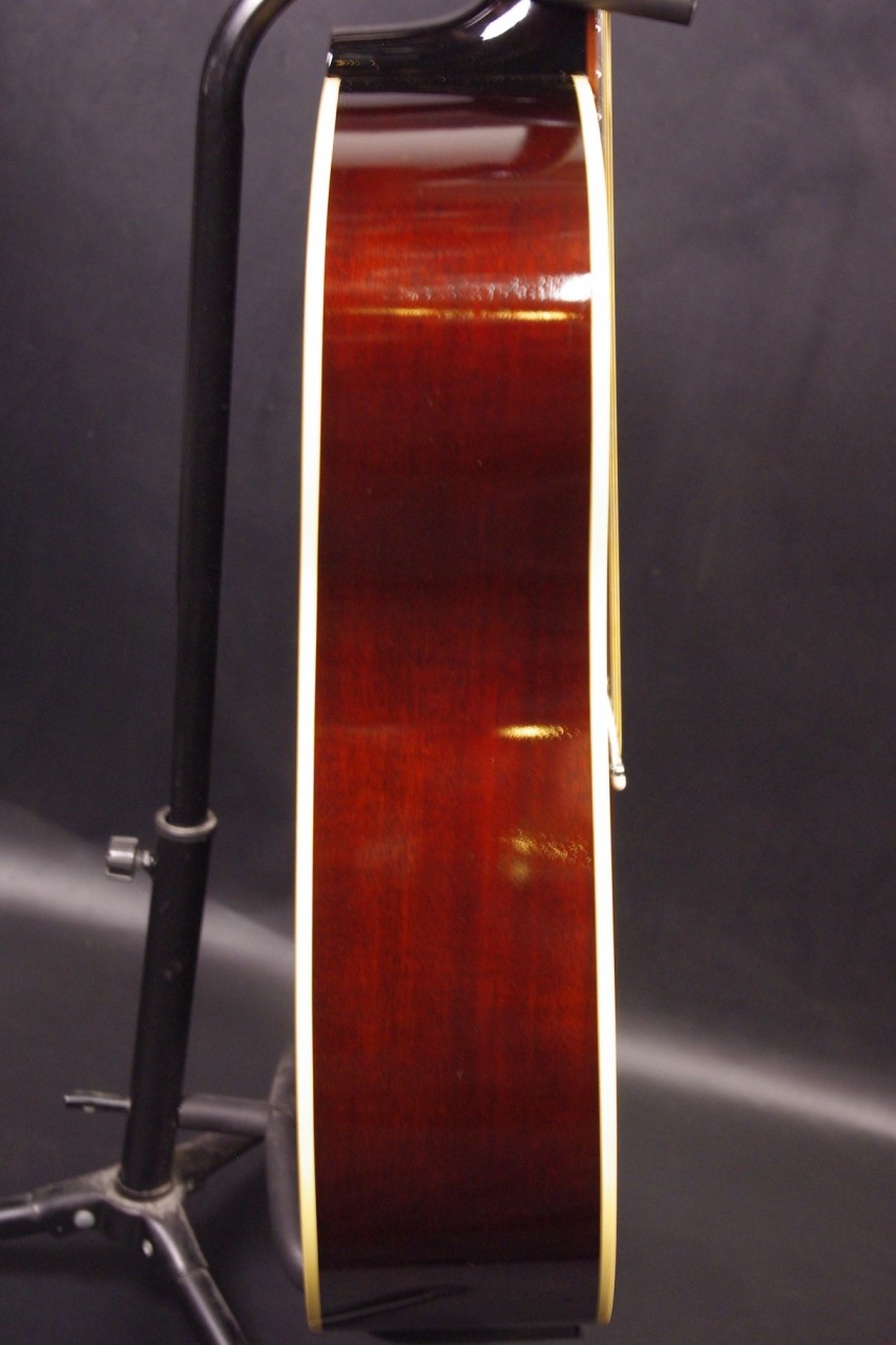 日本製!SWITCHの RSD-45 ADJ 39mmが入荷しました!!トップはアディロンダックスプルース、サイドバックにはホンジュラスマホガニーの厳選された材を採用したラウンドショルダーモデル!60年代後期のアジャスタブルブリッジ、ナット幅は約39mmのナローネックが大きな特徴で歯切れがよく迫力があります!クルーソンタイプの3連ペグや厚みのあるラージピックガードなどパーツも拘り作りもしっかりと丁寧に仕上がっています。ブラウンサンバーストカラーも美しく大変魅力ですね!ネックヒールへのストラップピン加工はございません。以前にピックアップを取り付けていたためエンドホールが広がっています。現在はコンバージョン用のエンドピンで対応しています。細かい傷はありますが全体的に綺麗で演奏性も抜群です!ネックのアングルも理想的でトラスロッドの動作も問題なく機能しています。フレットの減りもなく長期で安心いただけます。弦高もハイポジションまで押さえやすく調整していますがお好みに合せてサドル側での微調整も可能です。ナトーネックの締まりの良いキレの良いサウンド!ストローク中心での演奏に一押し!弦長は約630mm、重量もやや軽めでとても扱いやすい1本でこれはおすすめです!!SWITCHギグケース付き