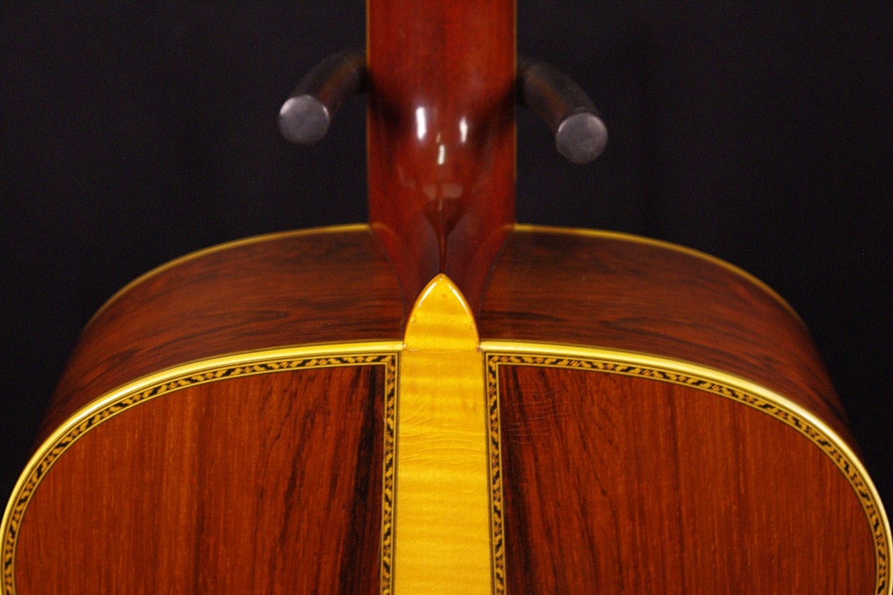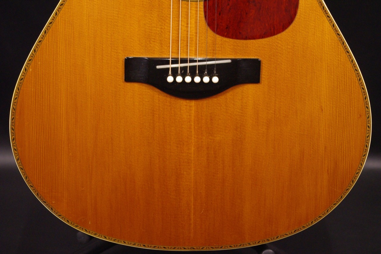 トップ エゾ松単板、サイド・バック ハカランダ単板、指板・ブリッジ エボニー、ネック マホガニー、オリジナルヤマハペグ、オリジナルべっ甲柄ピックガード、Xブレーシング、
