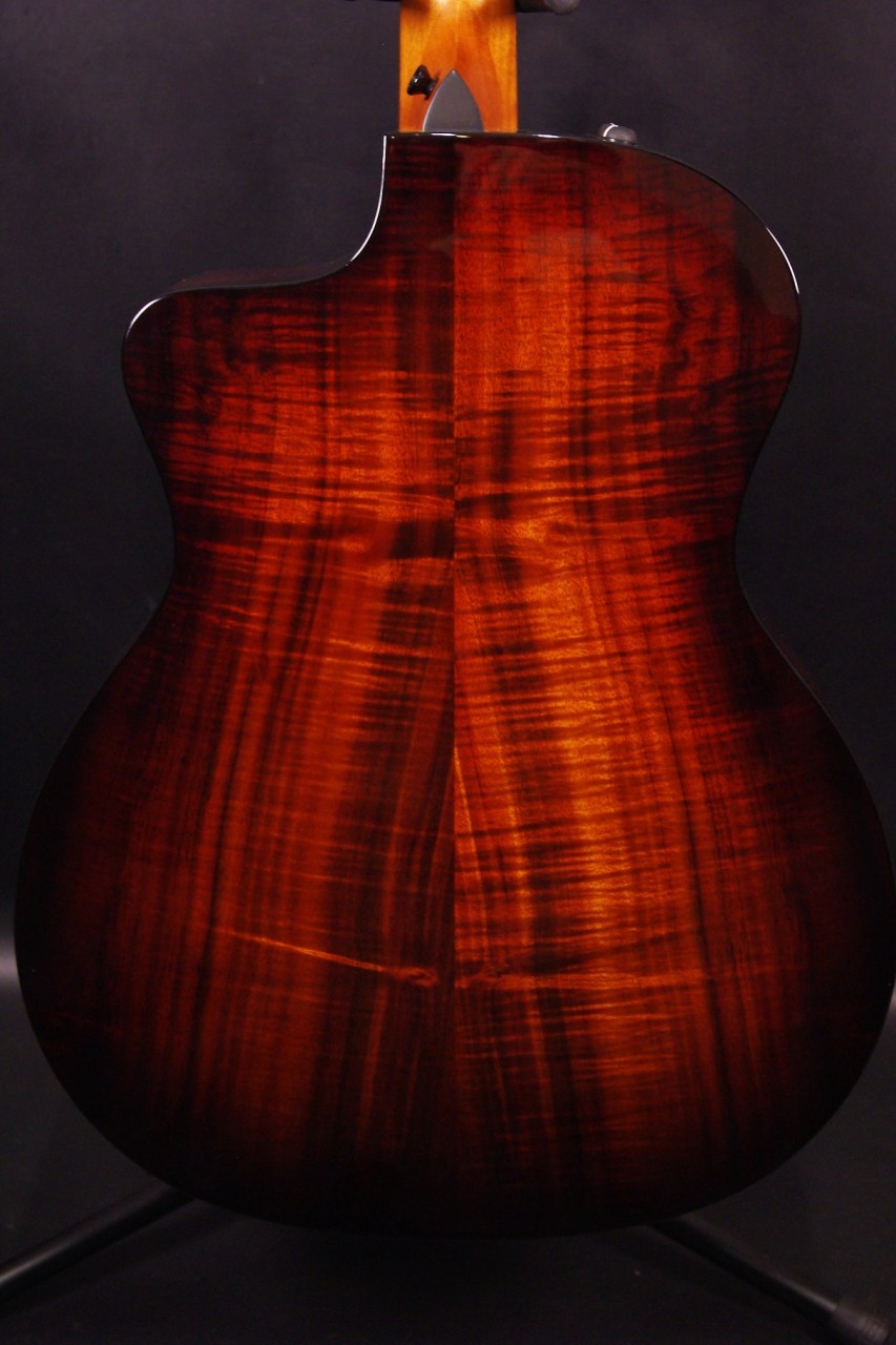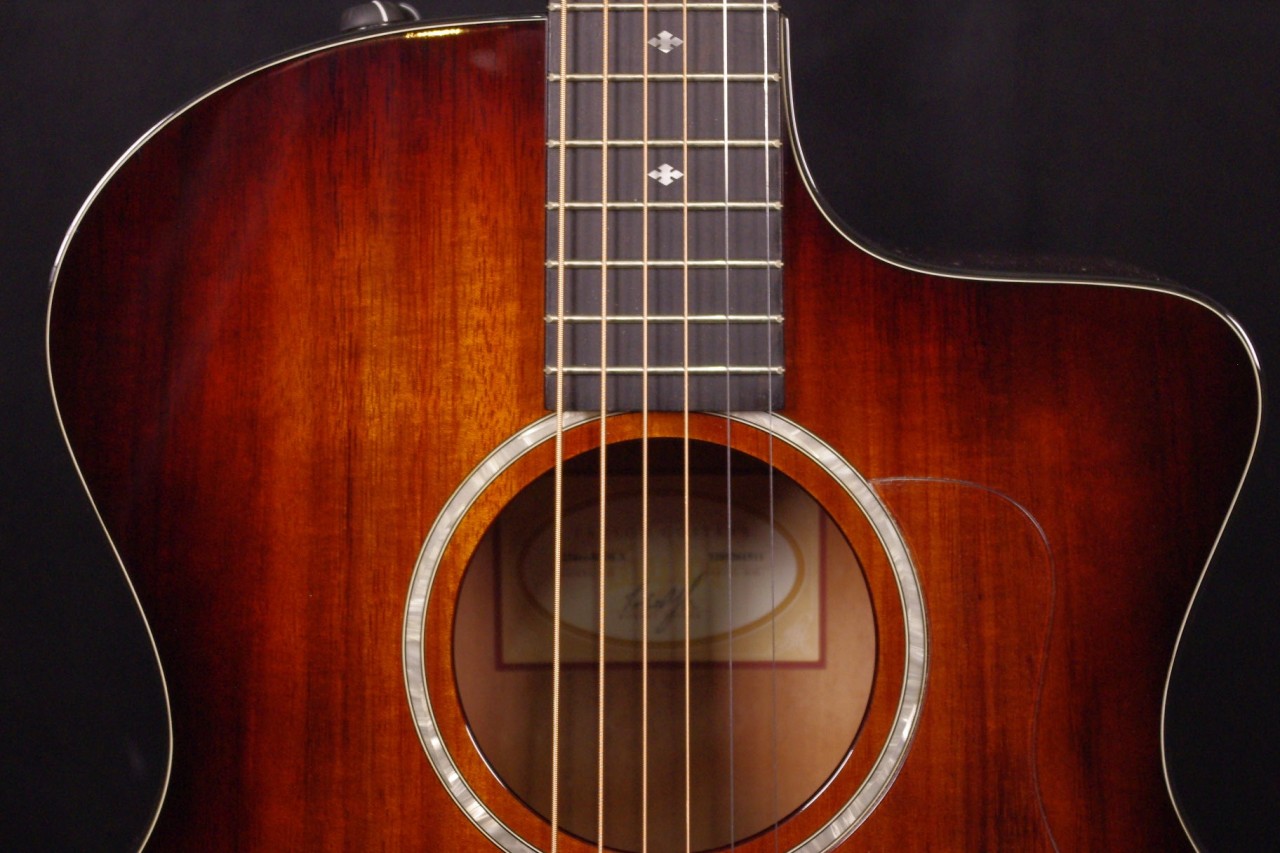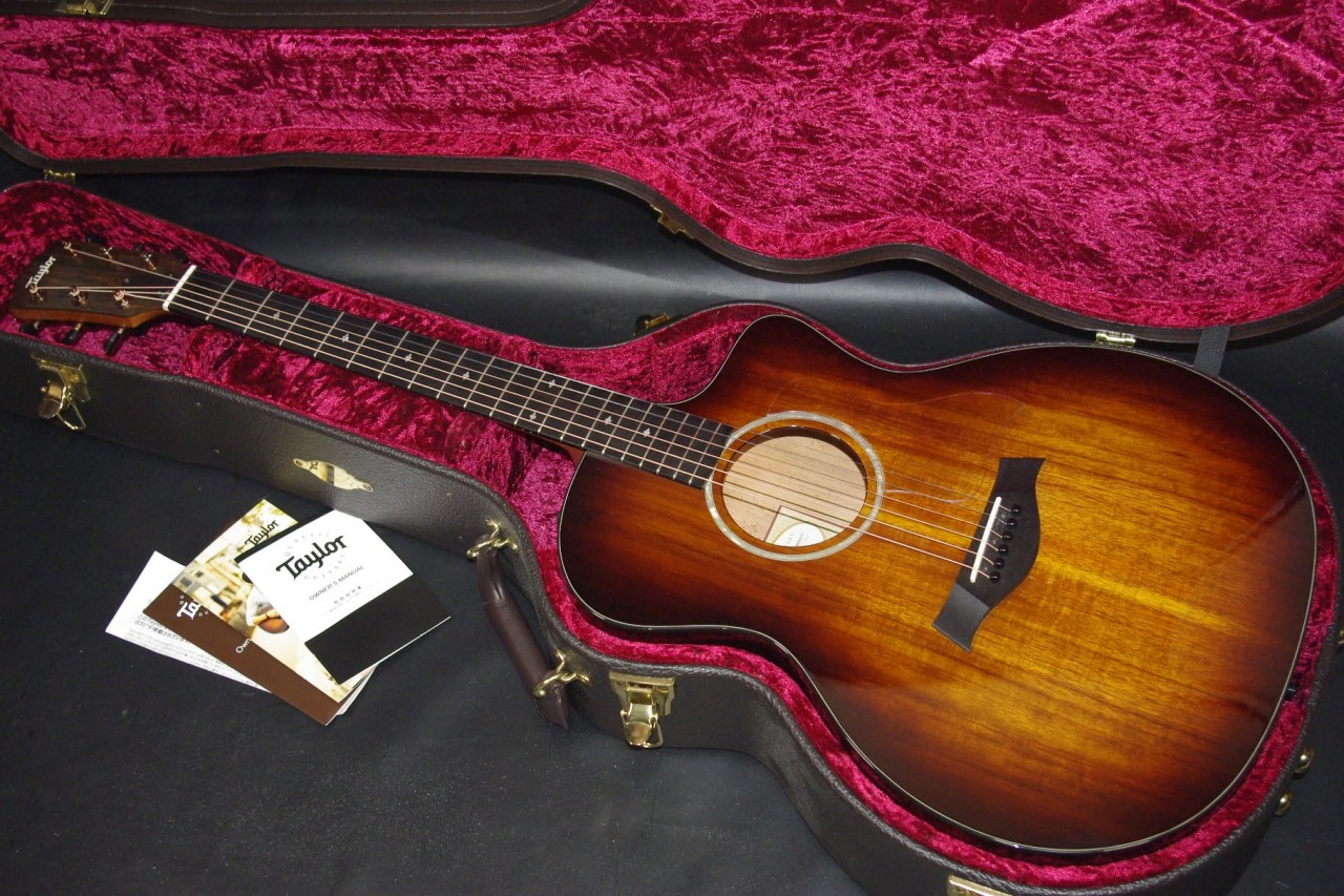 テイラー200シリーズ 224ce Koa DLXが入荷しました!!トップはハワイアンコア単板、サイドバックはハワイアンコア合板、指板とブリッジにはエボニーを採用、グロスフィニッシュで仕上げておりルックスも高級感があります!人気のグランドオーディトリアムボディにカッタウェイ仕様でストロークからフィンガーピッキングと幅広い演奏で扱いやすい1本!!ペグはエボニーボタンに交換、また透明のピックガードが貼られています。シリアルナンバーから2021年製で使用感は少なく目立った傷のない美品で演奏性も優れています。ネックヒールへはストラップピンが打っています。テイラー独自のES2ピックアップが内蔵されておりライブでも即戦力でお楽しみいただけます。ナット幅は約42.8mm、やや薄めで握りやすいグリップです!ネックのアングルも適正でトラスロッドの動作も問題なく機能しています。フレットの減りも少なく長期で気にしないでお使いいただけます。弦高は12フレット6弦側で約2.3mm、1弦側で約1.6mmの高さで押さえやすく調整してます。お好みに合せた微調整にもお応えいたします。甘く煌びやかな美しいサウンド!バランスのとれた自然な響きで指弾きでは非常に癒されます!是非この機会にどうぞ!お買い得!オリジナルテイラーハードケース付き