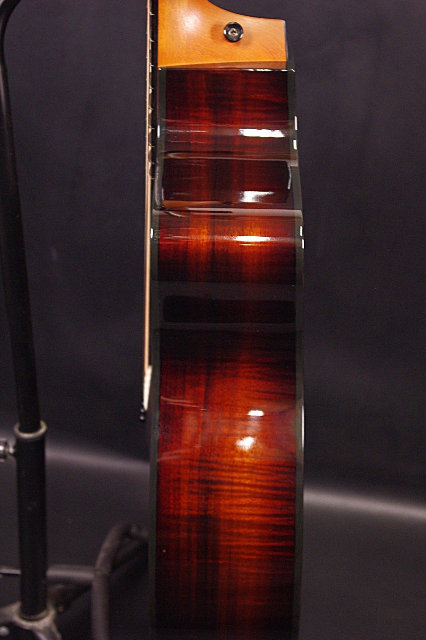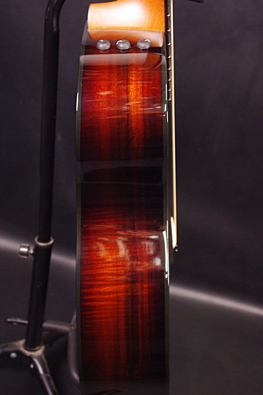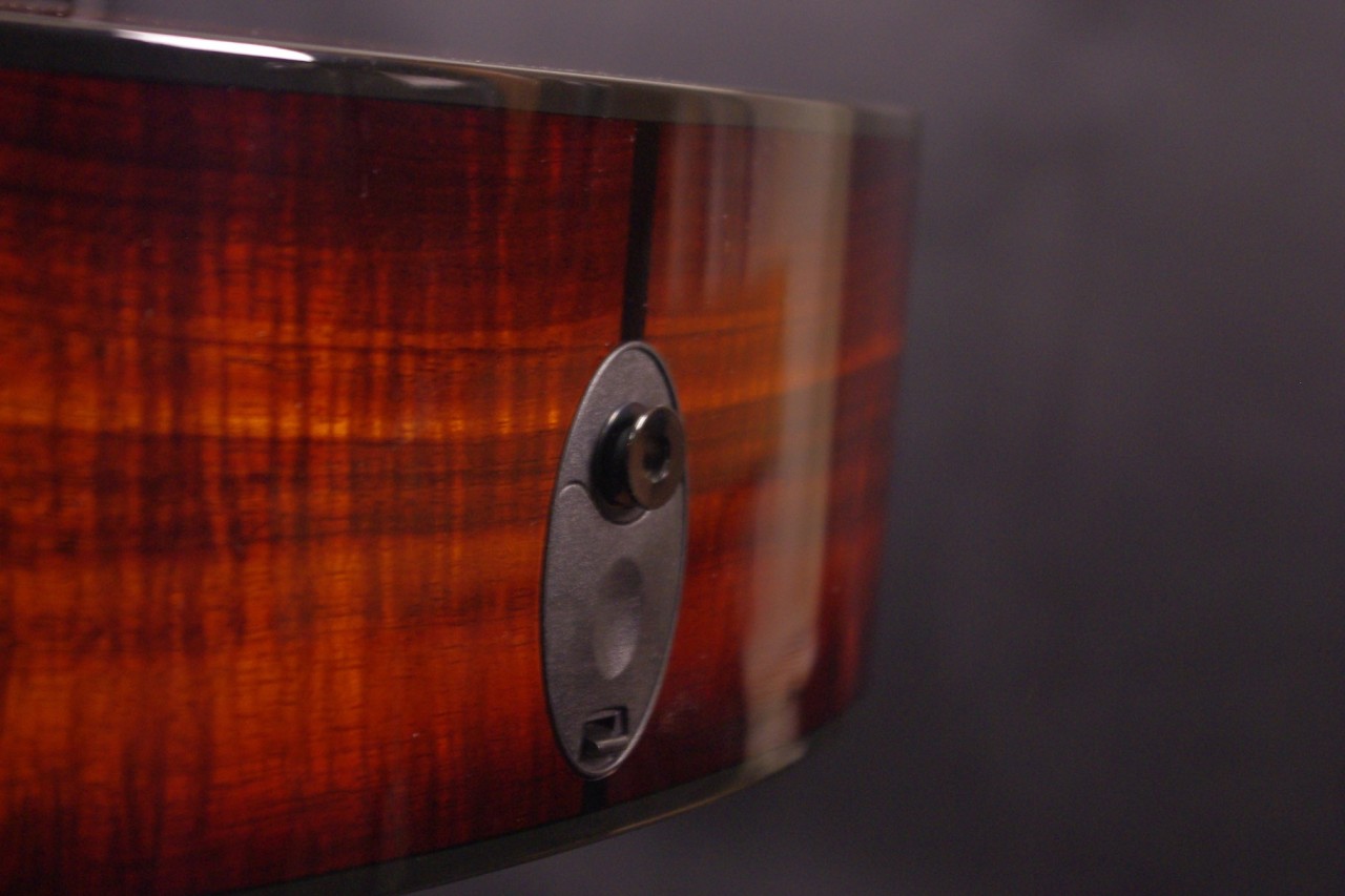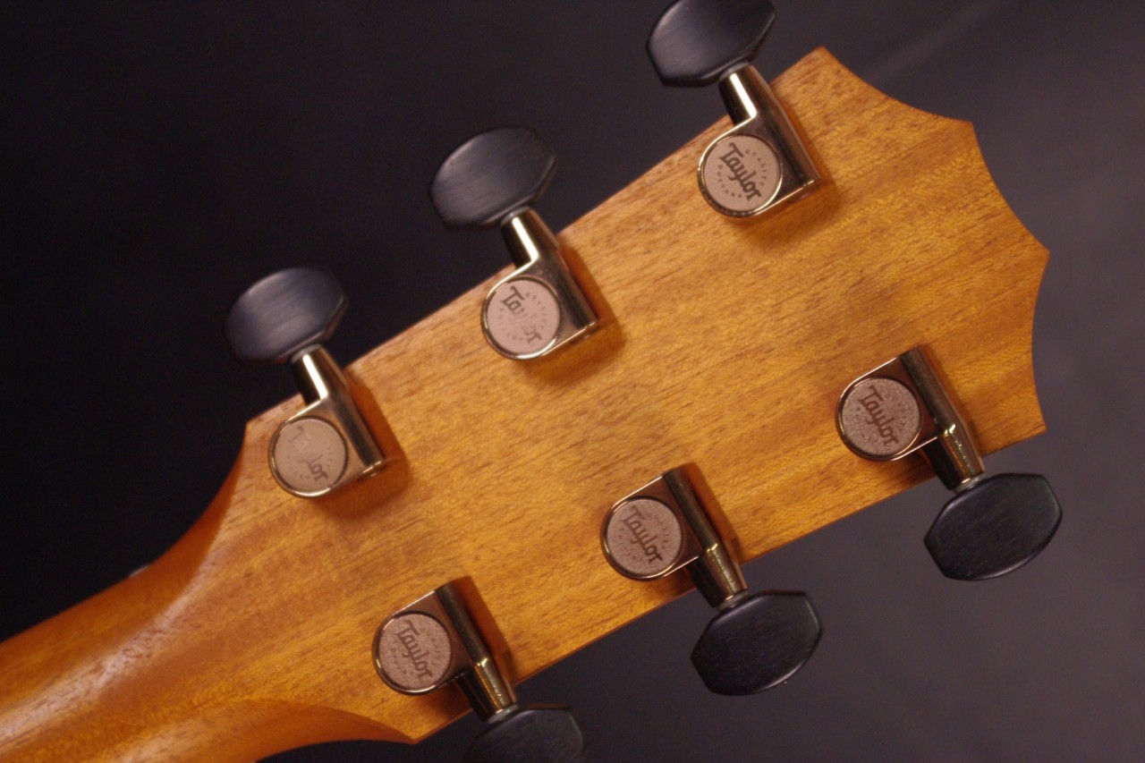 トップ ハワイアンコア単板、サイドバック ハワイアンコア合板、指板・ブリッジ エボニー、ネック サペリ、テイラーペグチェンジ、透明ピックガード後付け、Xブレーシング、ES2ピックアップシステム、