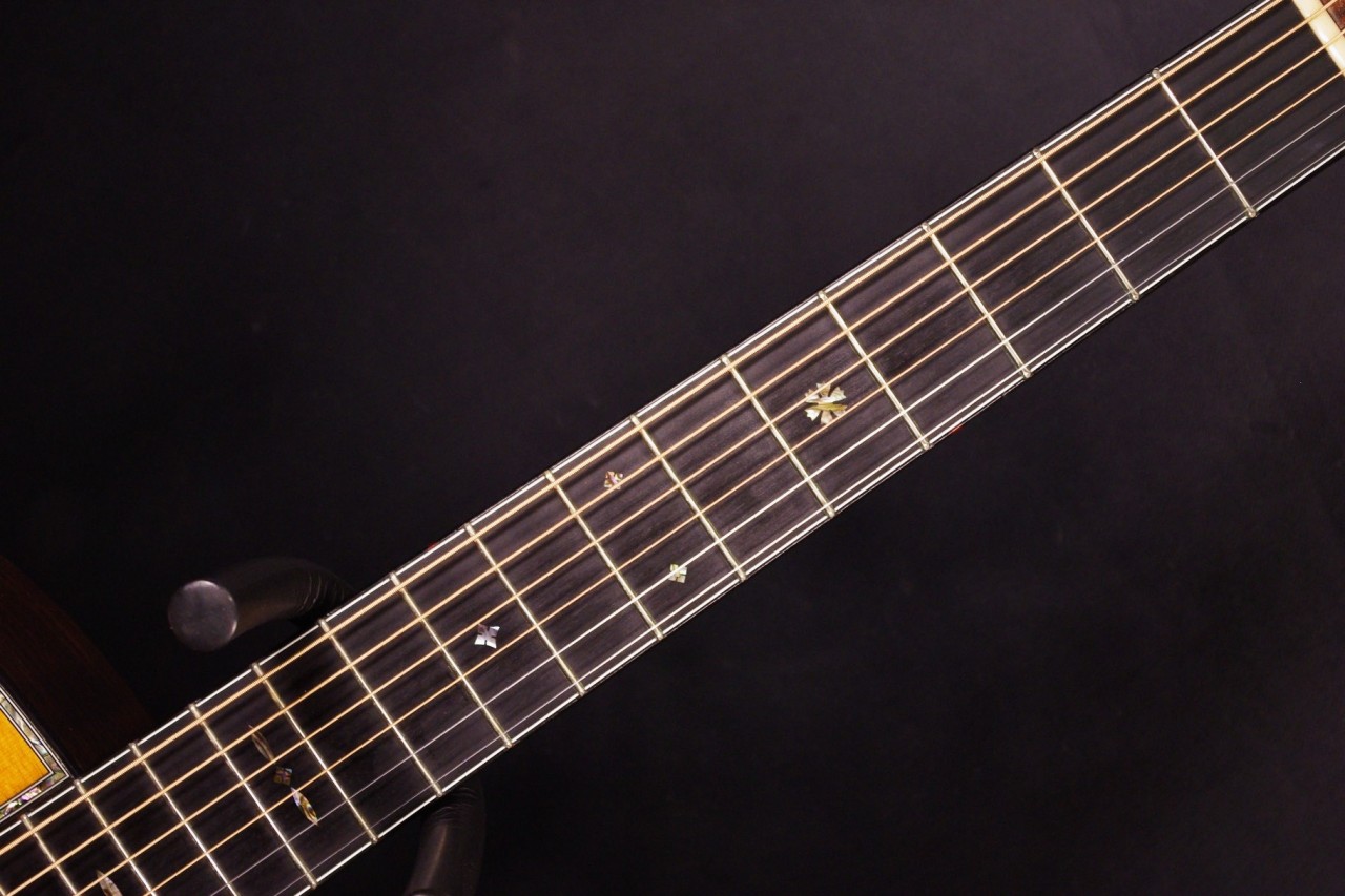 トップ シトカ・スプルース、サイドバック インディアンローズウッド、指板・ブリッジ エボニー、ネック マホガニー、オリジナルウェバリーオープンバックペグ、オリジナルべっ甲柄ピックガード&バインディング、スキャロップドXブレーシング、スノーフレイク&キャッツアイポジションインレイ、アバロントリム、