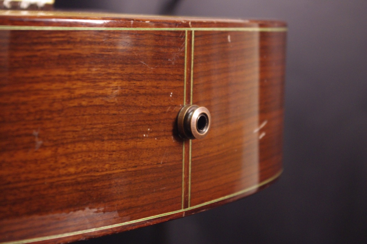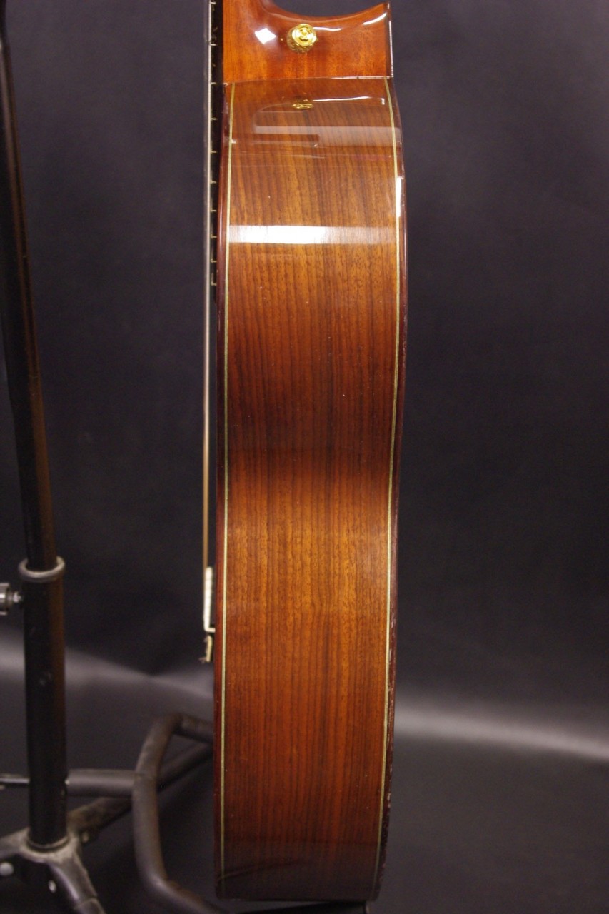トップ ドイツ松単板、サイド・バック ローズウッド単板、 指板 エボニー、ブリッジ ローズウッド、ネック マホガニー、オリジナルゴールドペグ、ファンブレーシング、ダブルホールブリッジ、ファンブレーシング、ウッドバインディング、