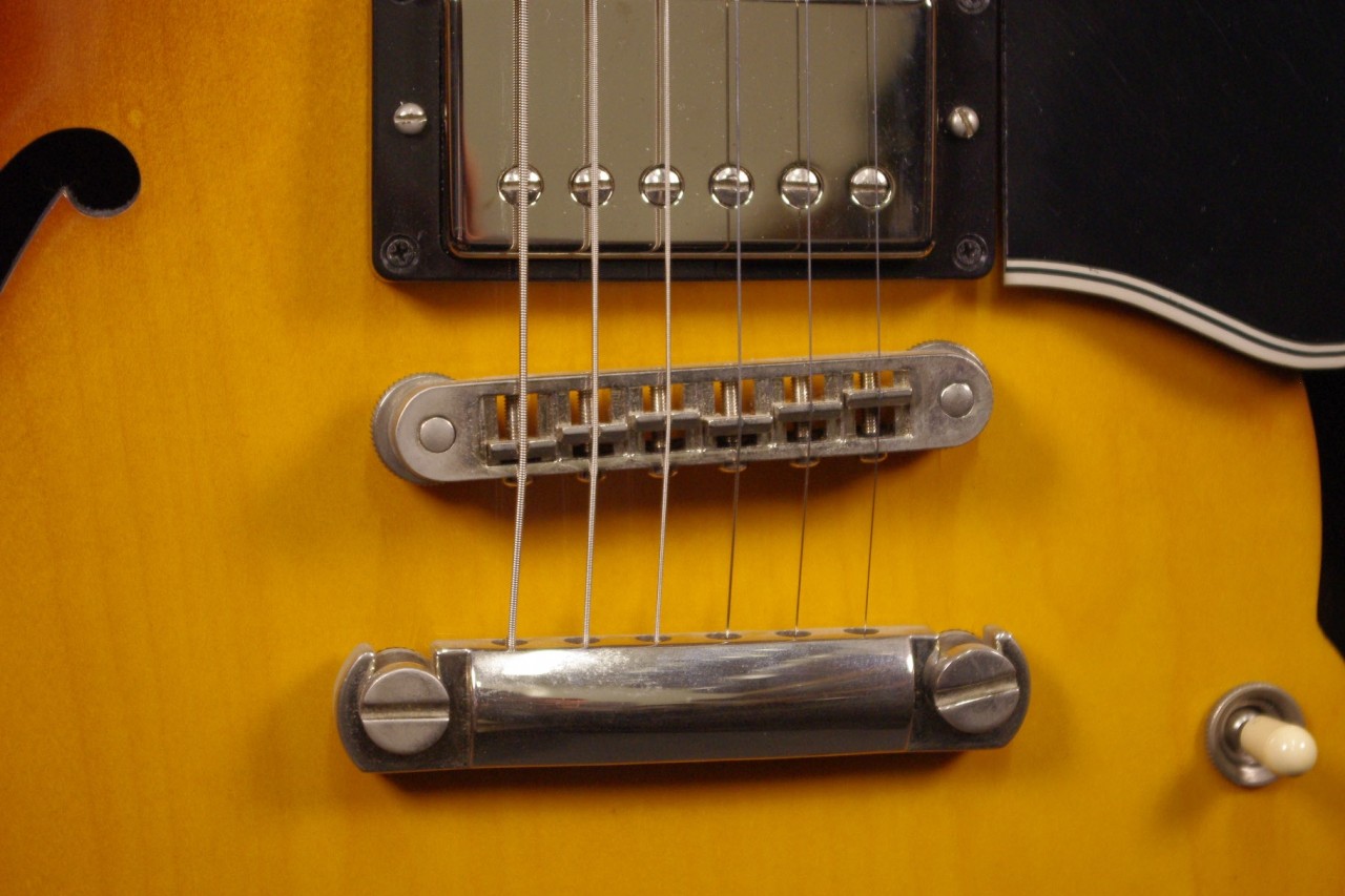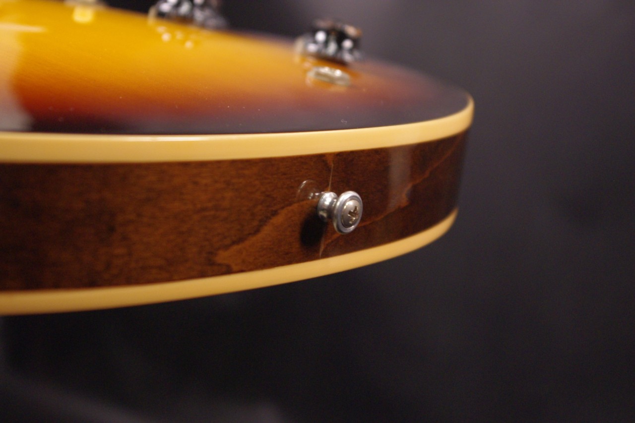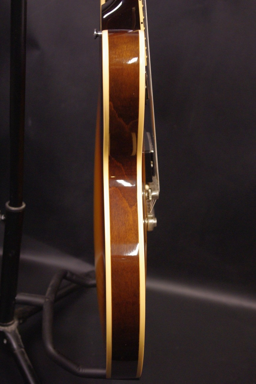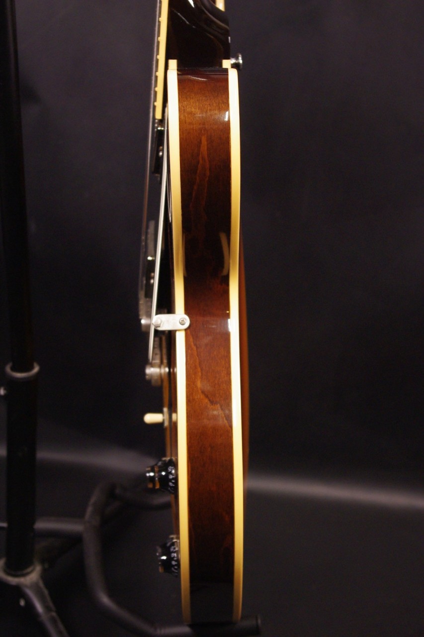 2013年にメンフィスで生産されたES-335 DOT Plainが味わい深いヴィンテージサンバーストフィニッシュで入荷しました!!メイプルとポプラを使ったボディにマホガニーの1ピースネックを採用、ピックアップには57Classic が2基搭載されておりセミホロウ特有の甘くコシのある豊かなサウンドで使い勝手が良いですね!生産から10年以上経過していますが保管状態がよく全体的に綺麗で光沢があります!グローバー製のペグ、ピックガードやブリッジなど主なパーツもオリジナルで残っていました。ナット幅は約42mmのやや薄めのグリップになります。ネックのアングルも理想的でトラスロッドの動作も問題なく機能しています。フレットもオリジナルで減りがなく長期で安心してお使いいただけます。弦高もハイポジションまでストレスを感じない高さで調整していますがお好みに合せた微調整にもお応えいたします。電気系の不具合もなく即戦力でお使いいただけます!!是非この機会にお試しください!オリジナルハードケース付き