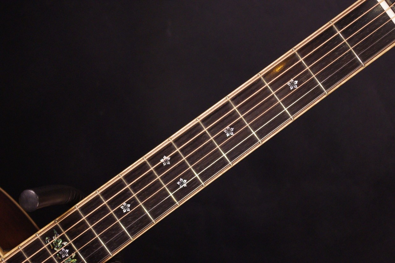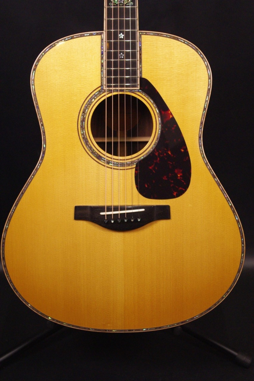 新品同様!!!ヤマハ Lシリーズ最高峰 LL86 ARE CUSTOMが美品、極上コンディションで入荷しました!!トップはARE加工が施された最高級のイングルマンスプルース単板、サイドバックには稀少材ハカランダ単板、指板とブリッジにはエボニーの厳選された材を採用、2023年に生産されたモデルで使用感の少ない美品です!ヘッドから指板、ボディには美しいアバロンインレイ、メイプル材を使ったバインディングが施されておりルックスも高級感がありますね!!ゴールドペグ、べっ甲柄ピックガード、ブリッジもオリジナルでストラップピンやピックアップの取り付け加工もなくそのままの状態です!サウンド、演奏性も優ぐれており長期で安心してお楽しみいただけます。ナット幅は約43mm、薄すぎないちょうど良いグリップで幅広い演奏に対応できます。ネックのアングルも理想的でトラスロッドの動作にも余裕があります。フレットの減りも少なく今後も気にしないでお使いいただけます。弦高は12フレット6弦側で約2.6mm、1弦側で約1.8mmの高さで押さえやすく調整していますが微調整にもお応えいたします。倍音成分を多く含んだ煌びやかな美しいサウンド!粒立ちが非情によく軽く摘まんだだけで自然に前に抜けてくれますね!新品で購入を検討されていた方にとっては一押し!!是非この機会にお試しください!オリジナルヤマハハードケース付き