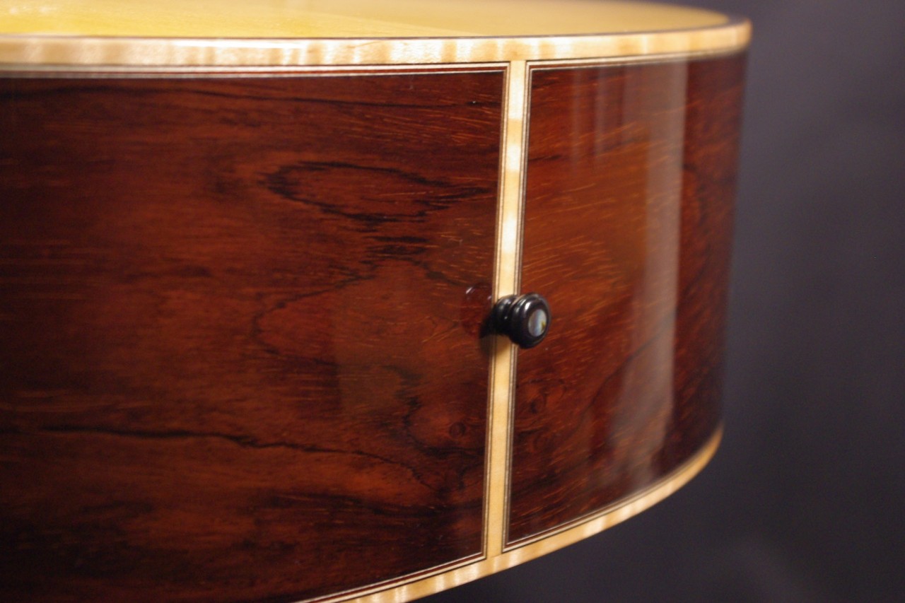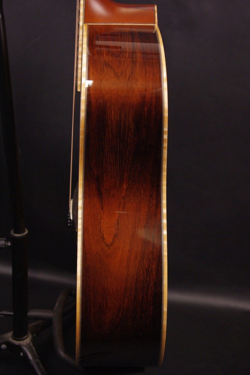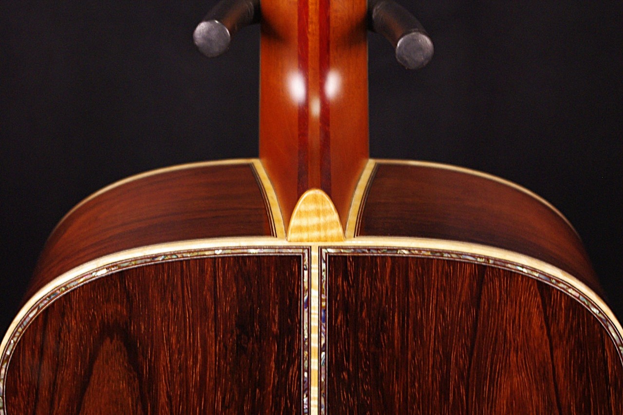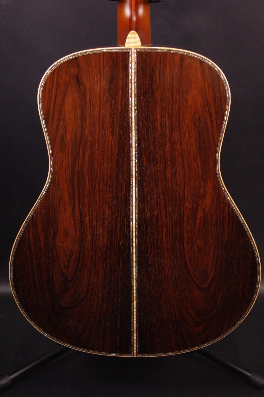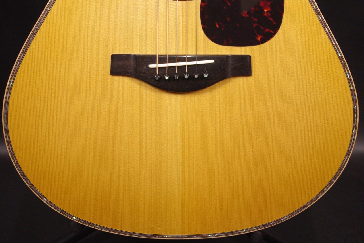 トップ 最高級イングルマンスプルース単板(ARE)、サイドバック 最高級ハカランダ単板、指板・ブリッジ エボニー、ネック マホガニー&パドック、オリジナルヤマハゴールドペグ、オリジナルべっ甲柄ピックガード、ノンスキャロップドXブレーシング、