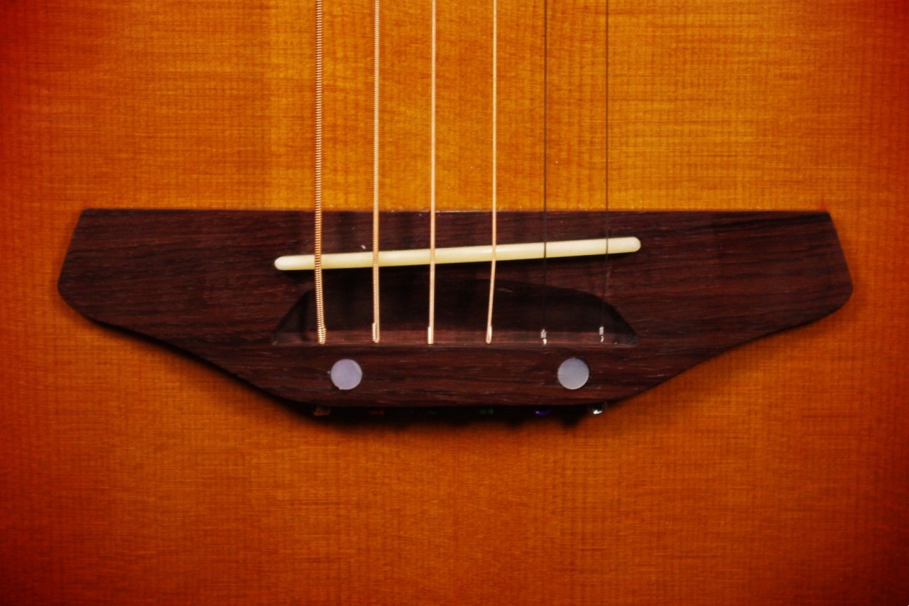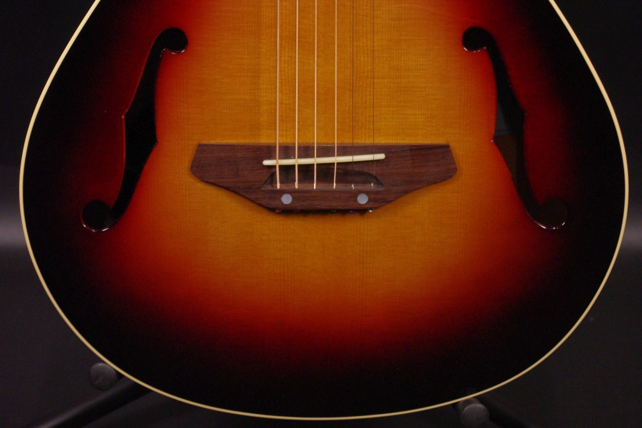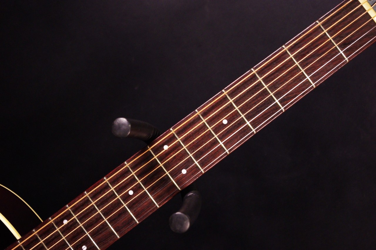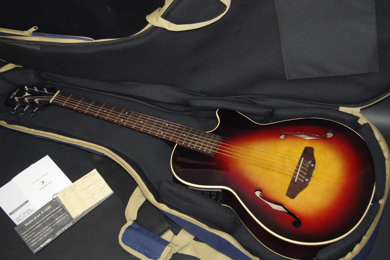 コンパクトで手軽に使えるK.YAIRIのエレアコ KYF-1が入荷しました!!トップはスプルース、サイドバックはプライウッド、指板とブリッジにはローズウッドを採用、FISHMAN Presys+プリアンプが内蔵されておりライブでもお楽しみいただけます。小ぶりなFホールのボディにカッタウェイが施されておりハイポジションまで無理なく使えるのも嬉しいですね!ルックスもよくギブソンのようなサンバーストフィニッシュも魅力です!ボディ内部のラベルから2025年で使用感の少ない美品です。ペグ、ピックガード、ブリッジなどパーツもオリジナルです。ネックヒールへのストラップピン加工もございません。ナット幅は約42mmのやや薄めの握りやすいグリップです。ネックのアングルも理想的でトラスロッドの動作も問題ございません。フレットの減りも少なく長期で気にしないでお使いいただけます。弦高は12フレット6弦側で約2.6mm、1弦側で約1.9mmの高さで押さえやすく調整しています。お好みに合せた微調整にもお応えいたします。オンボードタイプのプリアンプが内蔵されており便利に手元で音作りが可能です。新品同様!是非この機会にお試しください。K.YAIRIギグケース付。