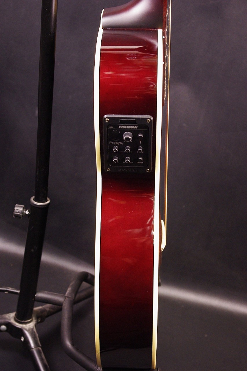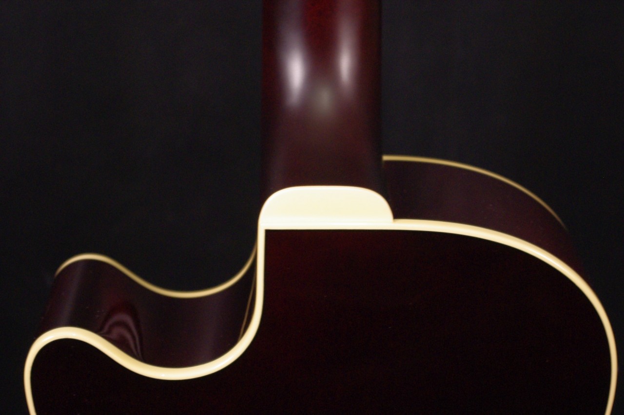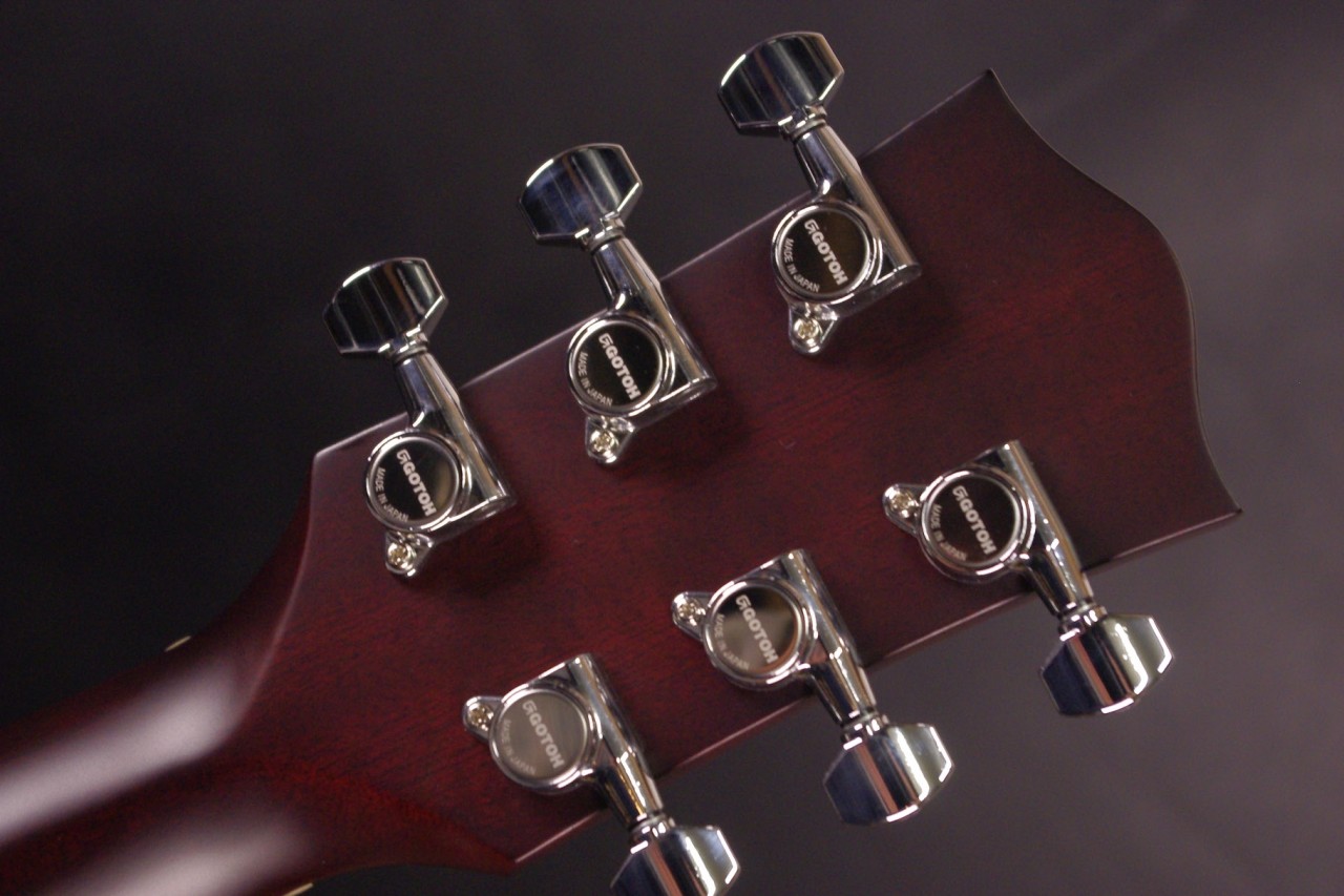 トップ スプルース、サイドバック プライウッド、指板・ブリッジ ローズウッド、ネック マホガニー、オリジナルゴトー製ペグ、Fホール、カッタウェイ、FISHMAN Presys+プリアンプ内蔵、