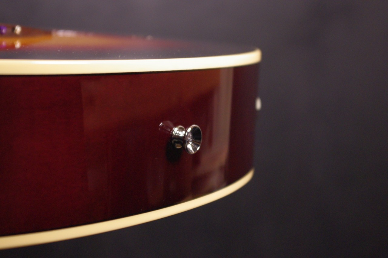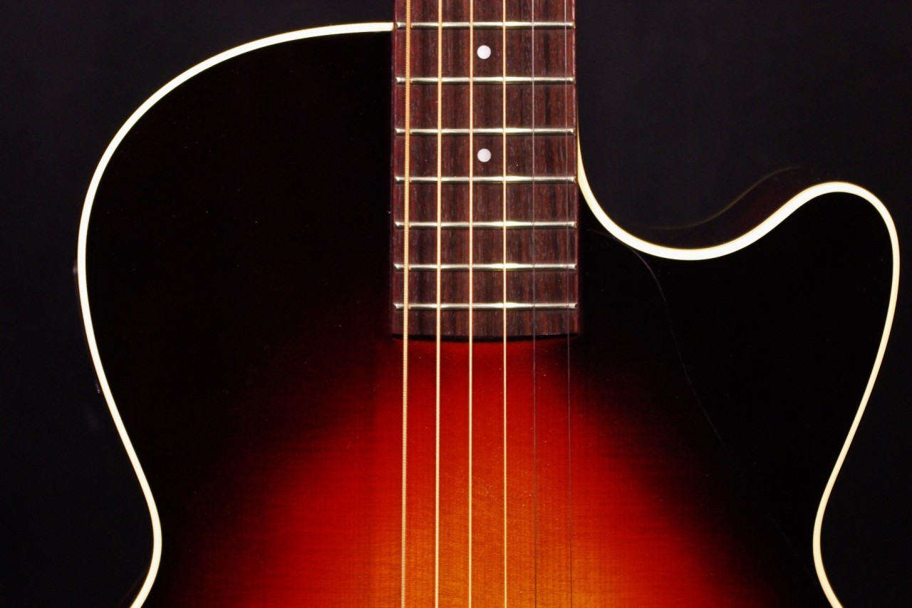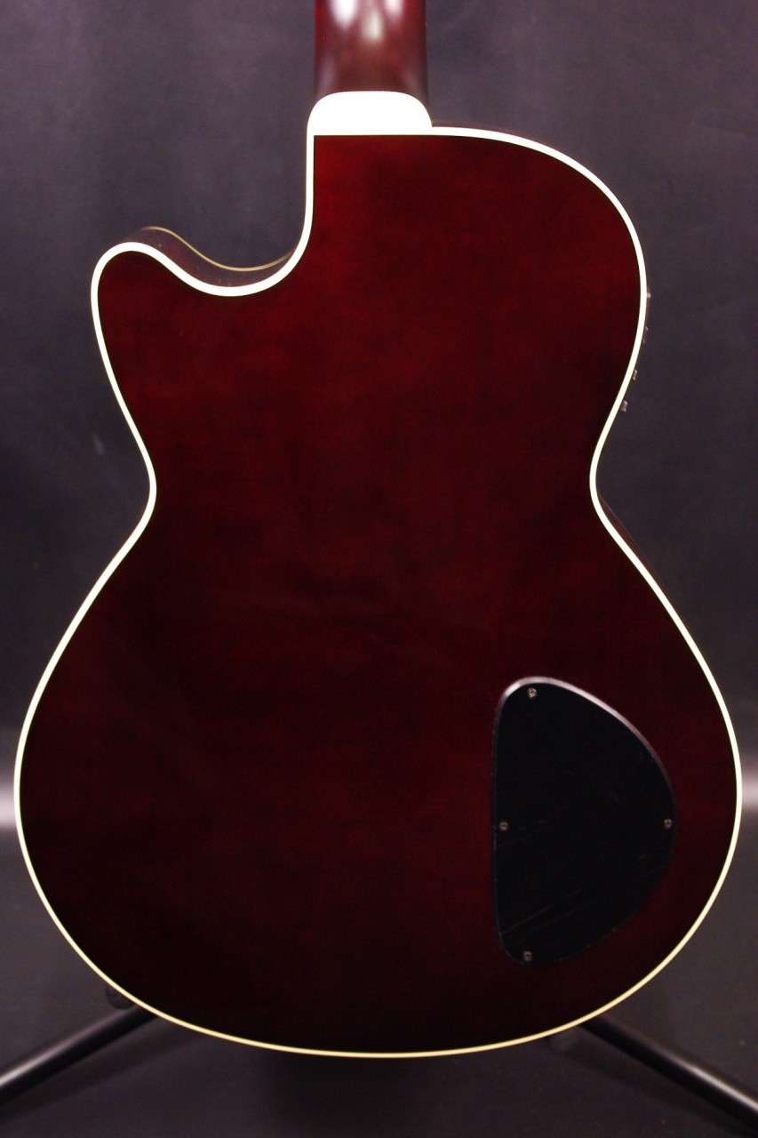 トップ スプルース、サイドバック プライウッド、指板・ブリッジ ローズウッド、ネック マホガニー、オリジナルゴトー製ペグ、Fホール、カッタウェイ、FISHMAN Presys+プリアンプ内蔵、