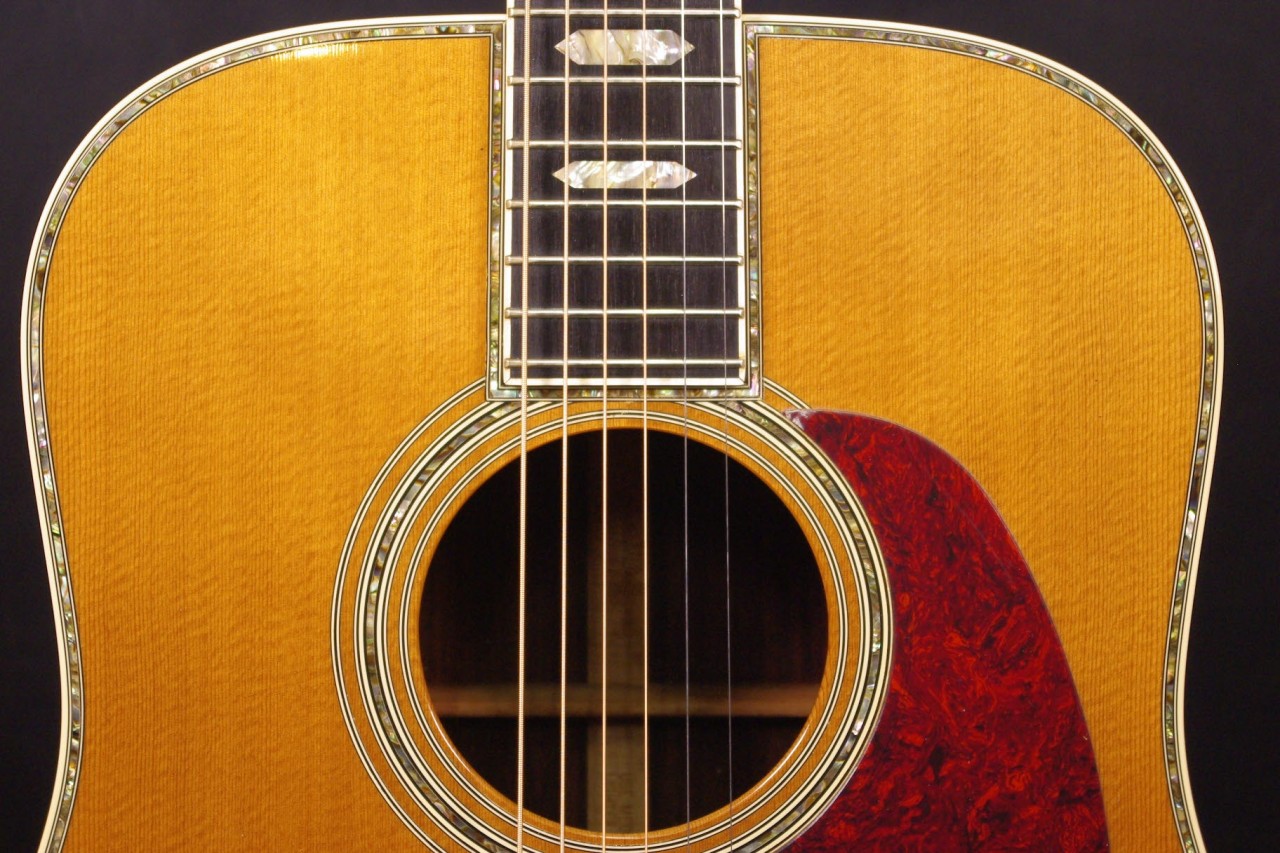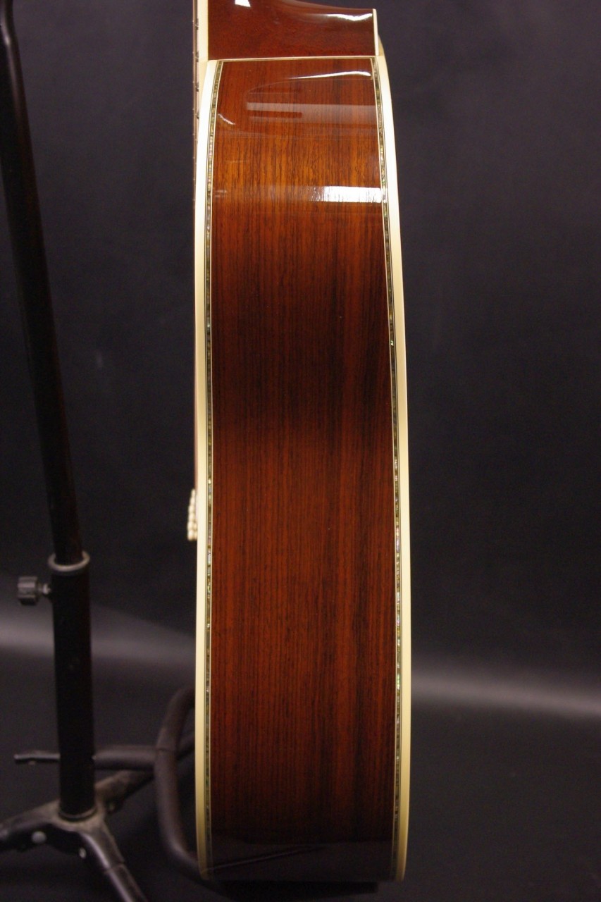 トップ シトカスプルース、サイドバック インディアンローズウッド、指板・ブリッジ エボニー、ネック マホガニー、オリジナルシャーラー製ゴールドペグ、オリジナルべっ甲柄ピックガード、ノンスキャロップドXブレーシング、ヘキサゴンポジションインレイ、アバロントリム&ロゼッタ、SQロッド、