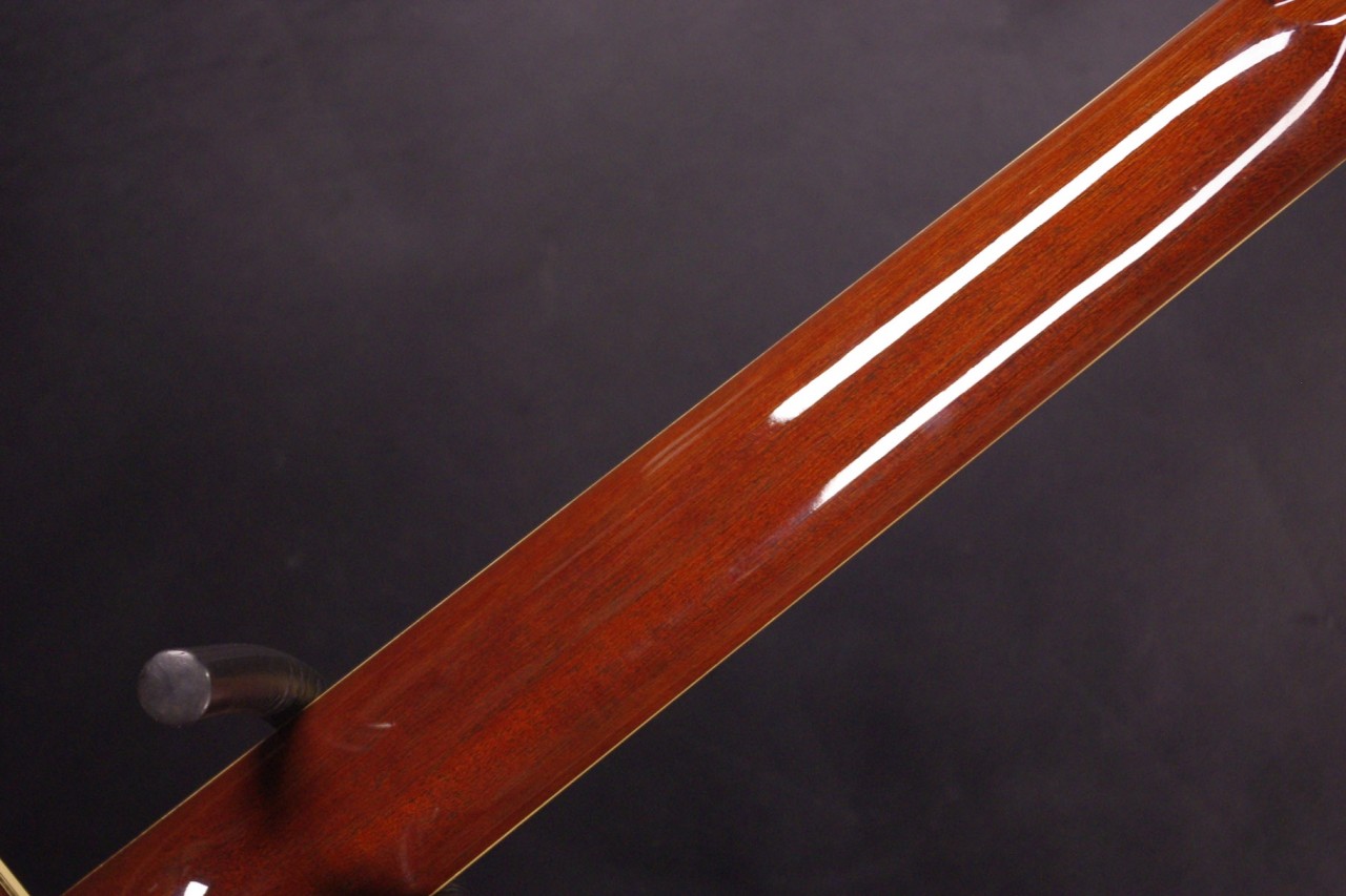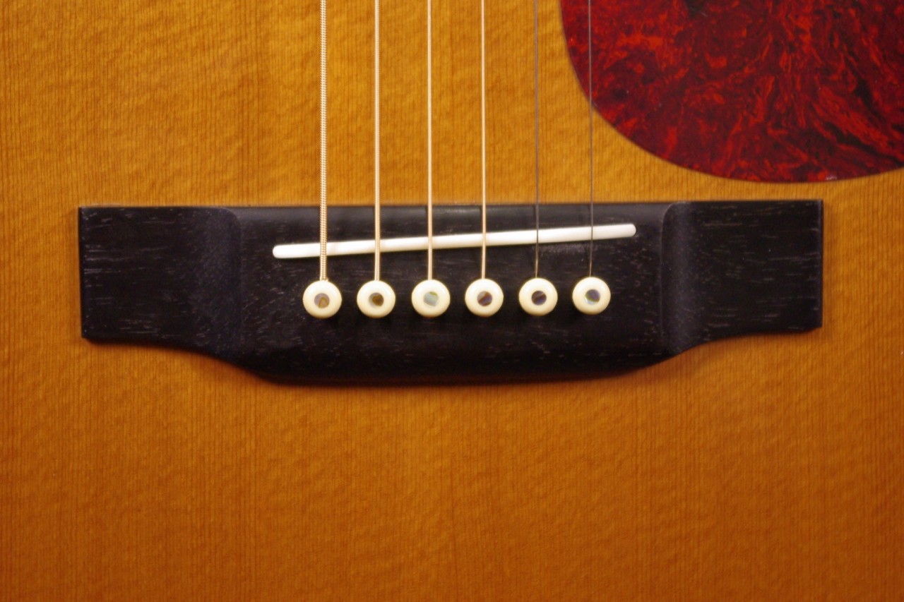 マーティン最高峰!D-45がSQロッド仕様で入荷しました!!トップはシトカ・スプルース、サイドバックには美しいローズウッド、指板とブリッジにはエボニーの厳選された材を採用、ネックはマホガニー材でSQロッドのため同時期のAJロッドと比べると太くしっかりとしたグリップが特徴です!シリアルナンバーから1999年に生産されたモデルでシャーラー製のマーティンペグ、べっ甲柄ピックガード、ブリッジもオリジナルで残っていました。ピックガード上には新品時からの保護シートが残っていました!ネックヒールへのストラップピンやピックアップなど特別な加工もなく良い状態を保っています。ヘッドから指板、ボディにはアバロン貝の装飾が入っておりルックスも美しく存在感が違いますね!!目立たない小さな打ち傷はありますが全体的に大変綺麗で光沢があります。ナット幅は約43mm弱の太めのグリップです。ネックのアングルは調弦時に若干の順反りは出ますが適正で弦高も12フレット6弦側で約2.3mm、1弦側で約1.7mmの高さでハイポジションまで押さえやすく調整しています。サドル側で微調整も可能です。フレットの減りもなく長期で安心してお使いいただけます。鈴を転がしたような煌びやかな美しい高音、倍音成分を多く含んだ最高峰に相応しいサウンドですね!ノンスキャロップドXブレーシングとSQロッドの影響もあり芯が太く、粘りがあり軽いタッチで響きます!!探していた方は是非この機会にお試しください!!オリジナルハードケース付き。