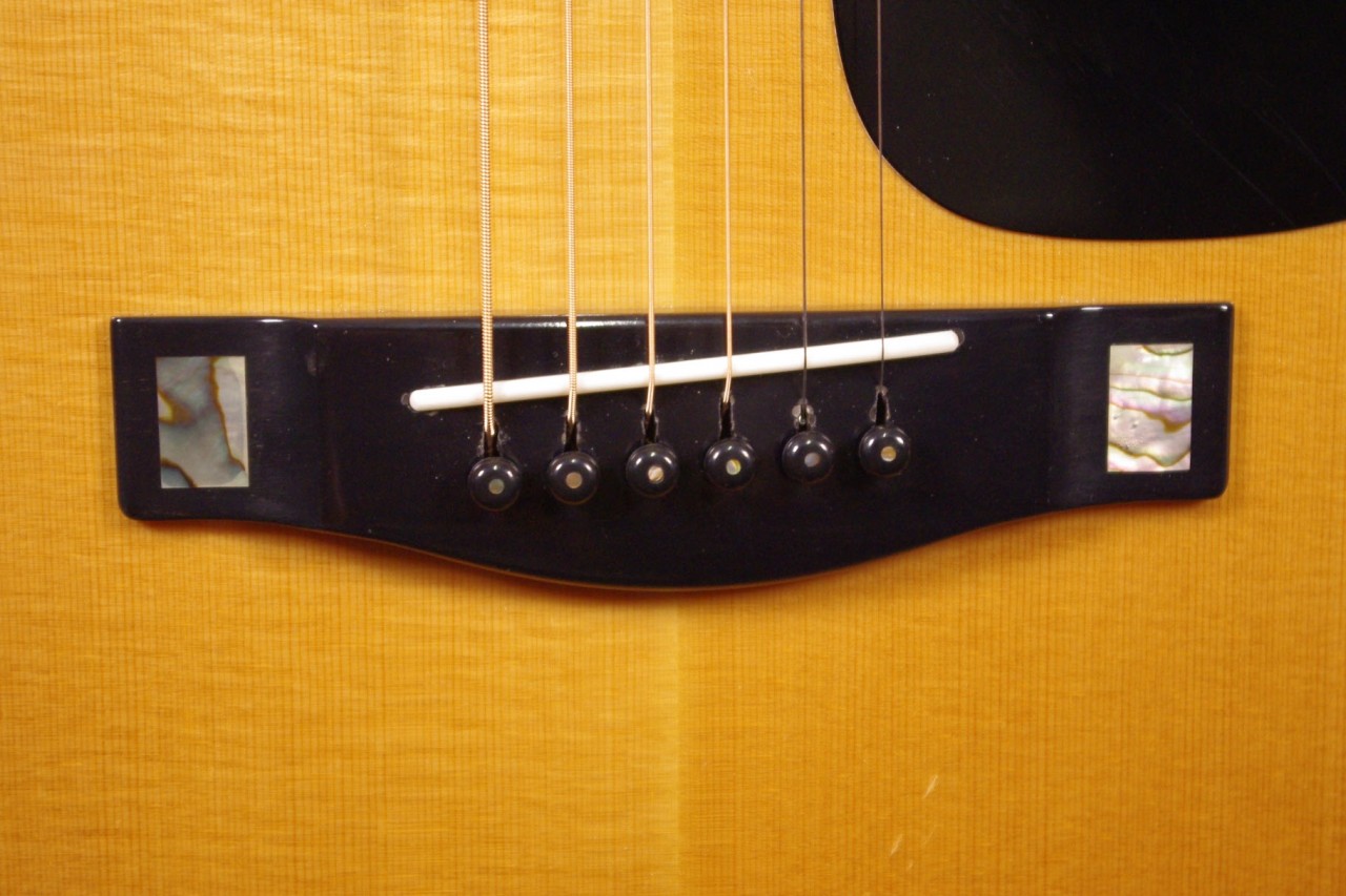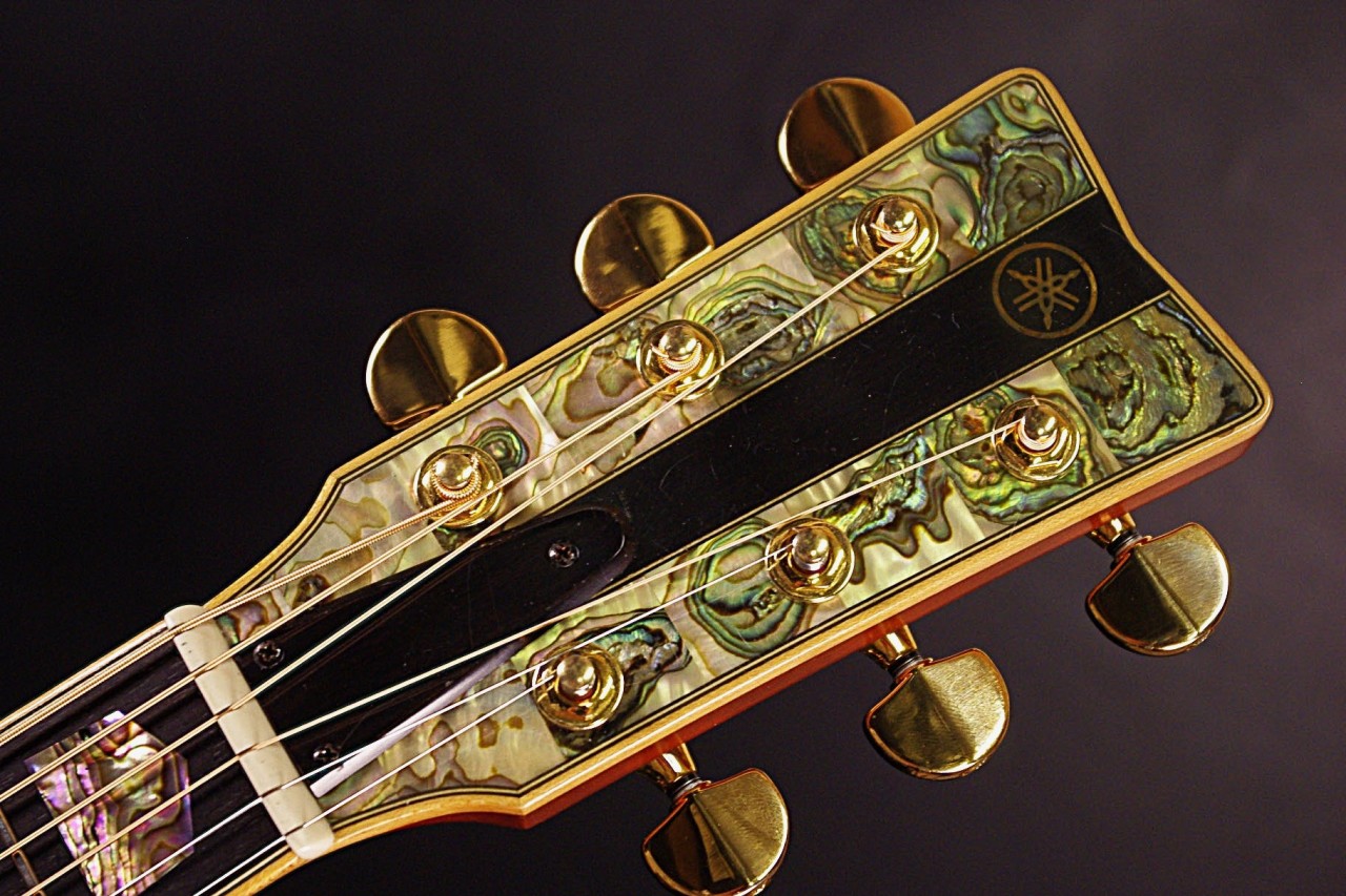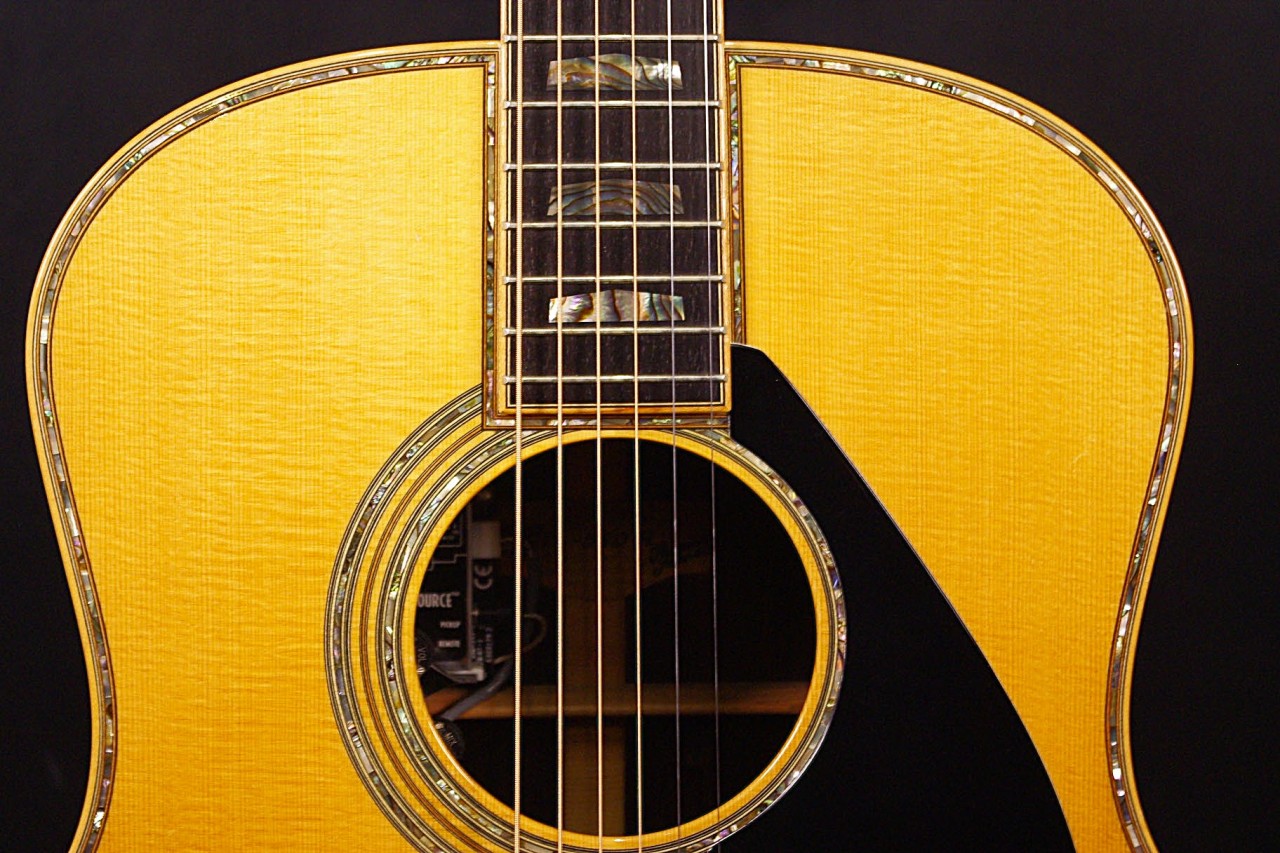 ヤマハ上位機種!LL53D R Custom が入荷しました!!トップには最高級のえぞ松単板、サイドバックには高級ローズウッド単板の2ピース、指板とブリッジにはエボニーの厳選された材を採用、受注生産されていたモデルで市場でも滅多に出てこないレアな1本です!ヘッドから指板、ブリッジ、トップとバックにはマーティンD-45を超えた豪華なインレイが入っており存在感があります!!ボディ内部のラベルも残っておりシリアルナンバーから2003年製になります。YAMAHAゴールドペグ、ピックガード、ブリッジもオリジナルで残っています。ヘッドの先端、所々に小傷がありますが全体的に大変綺麗で演奏性、サウンドも優れています!ネックヒールへはストラップピンが打ってあります。LRBaggs社のDual Sourceピックアップが搭載されておりライブで使いたい方にとっては魅力的です!ナット幅は約43mmのソフトVネックで幅広い演奏で握りやすいサイズです。ネックのアングルも理想的でトラスロッドは硬さを感じるところ締めて調整していましたが問題なく機能しています。フレットは高さもあり長期で気にしないでお使いいただけます。弦高は12フレット6弦側で約2.5mm、1弦側で約1.7mmの高さでハイポジションまで押さえやすく調整しています。サドル側での微調整も可能です。ストロークでは気持ちよく纏まりゴージャスに広がります!煌びやかな美しい高音が堪らなく指弾きでは非常に癒されますね!是非この機会にお試しください!!オリジナルヤマハハードケース付き