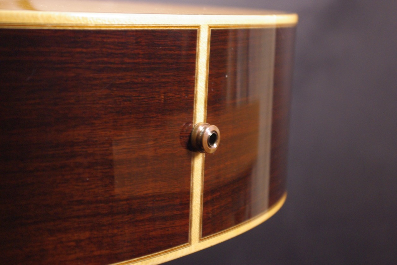 トップ 最高級えぞ松単板、サイドバック 高級ローズウッド単板、指板・ブリッジ エボニー、ネック マホガニー、オリジナルYAMAHAゴールドペグ、オリジナルブラックピックガード、Xブレーシング、アバロントリム&ロゼッタ、メイプルウッドバインディング、