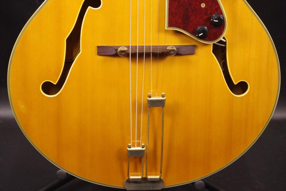 2000年代に生産されたEPIPHONE EMPERORが入荷しました!トップはスプルース、サイドバックにはメイプルを採用、17インチのラミネートボディにカッタウェイ、マグネットピックアップが搭載された手軽にお楽しみいただけるアーチトップです。ペグはギブソンデラックスに交換されています。ピックガード、ブリッジ、テールピースはオリジナルで残っています。ネックヒールへはストラップピンが打ってあります。細かい傷はありますが全体的に綺麗で光沢があります!ネック状態などコンディションがよく演奏性も優れていますので安心いただけます。ナット幅は約42.5mm、ネックのアングルも理想的でトラスロッドの動作にも余裕があります。フレットの減りは無く長期でお使いいただけます。弦高もハイポジションまで押さえやすく調整していますがお好みに合せた微調整にもお応えいたします。フローティング・ミニハムバッカーPUが搭載、ピックガードにヴォリュームとトーンが装着されており手元で微調整いただけます。豊かで温かみのある音色で特にジャズやブルースにオススメ!!オリジナルハードケース付き。
