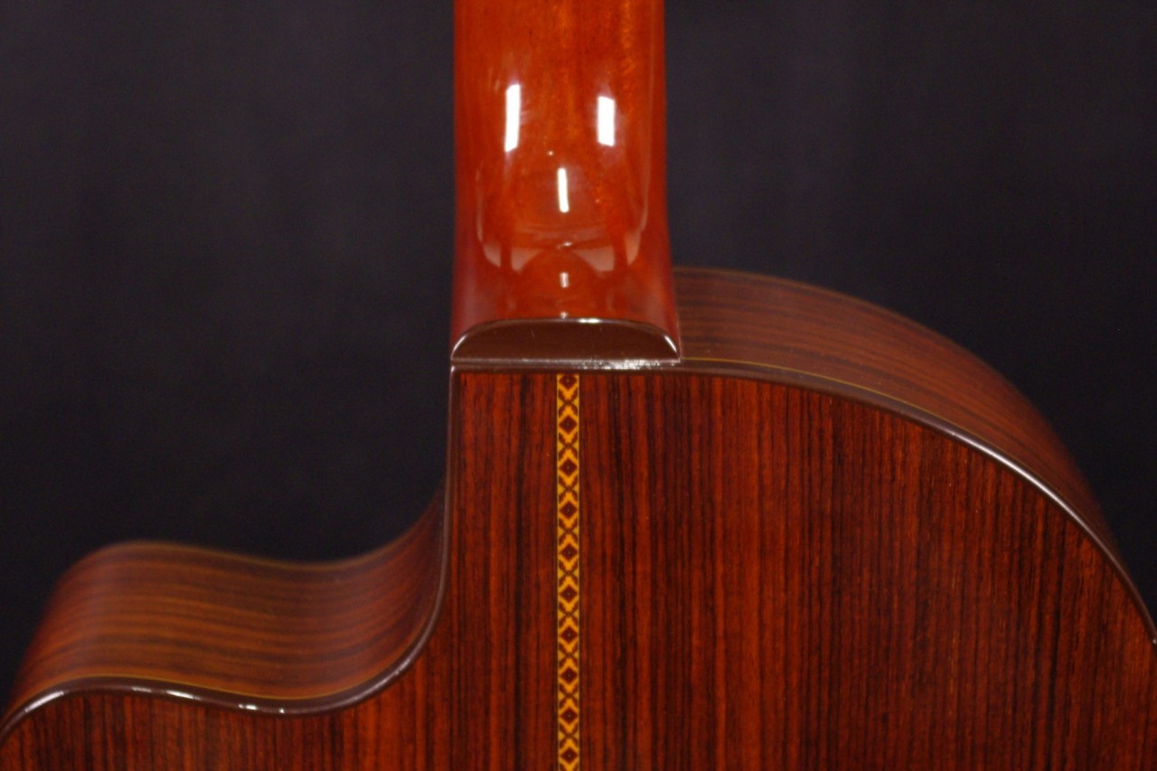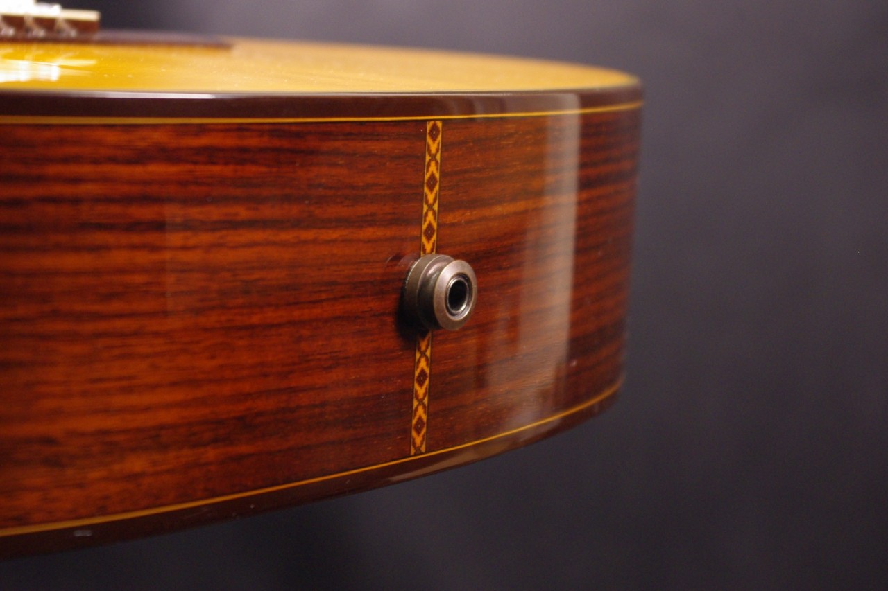 トップ スプルース単板、サイドバック ローズウッド、指板 エボニー、ブリッジ ローズウッド、ネック マホガニー、オリジナルゴールドペグ、スロテッドヘッド、12フレットジョイント、カッタウェイ、LRBaggsエレメントVTC搭載、