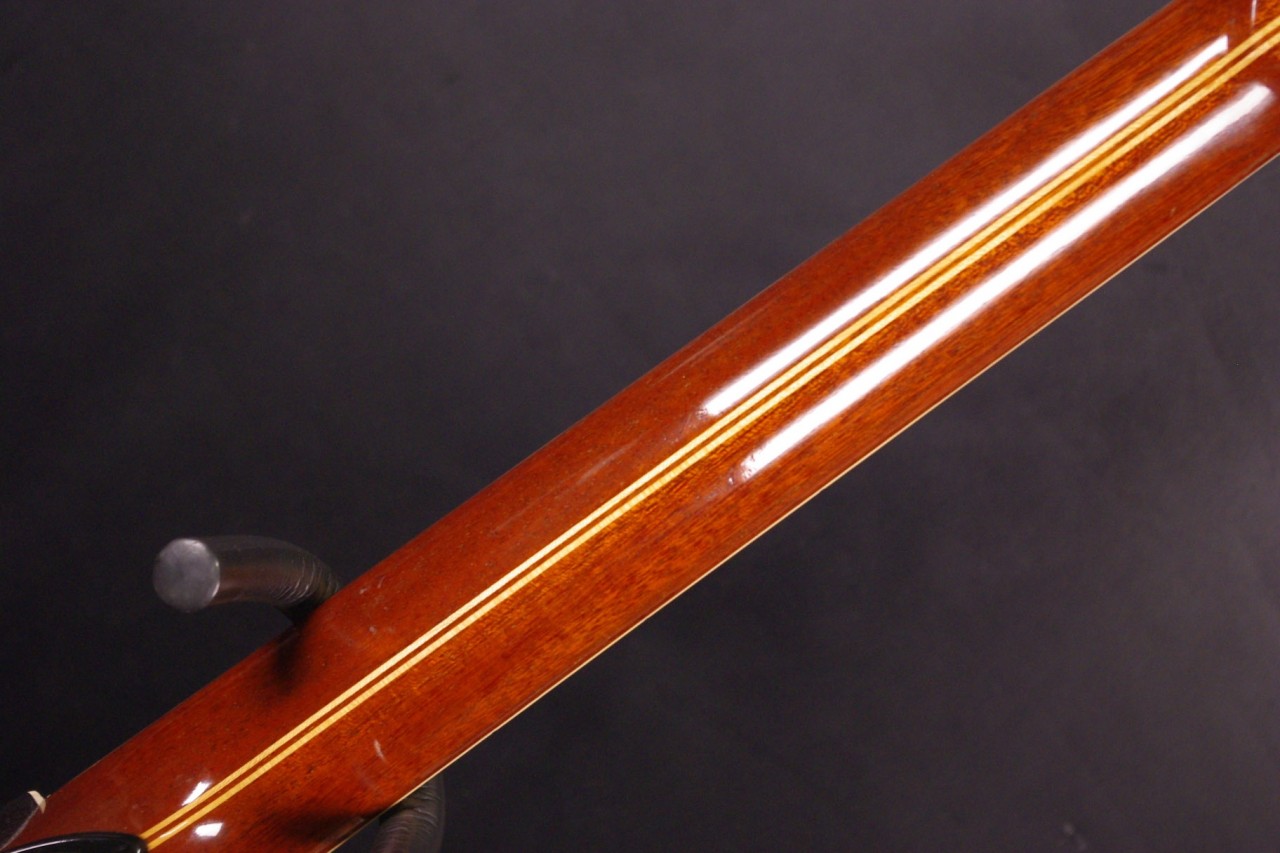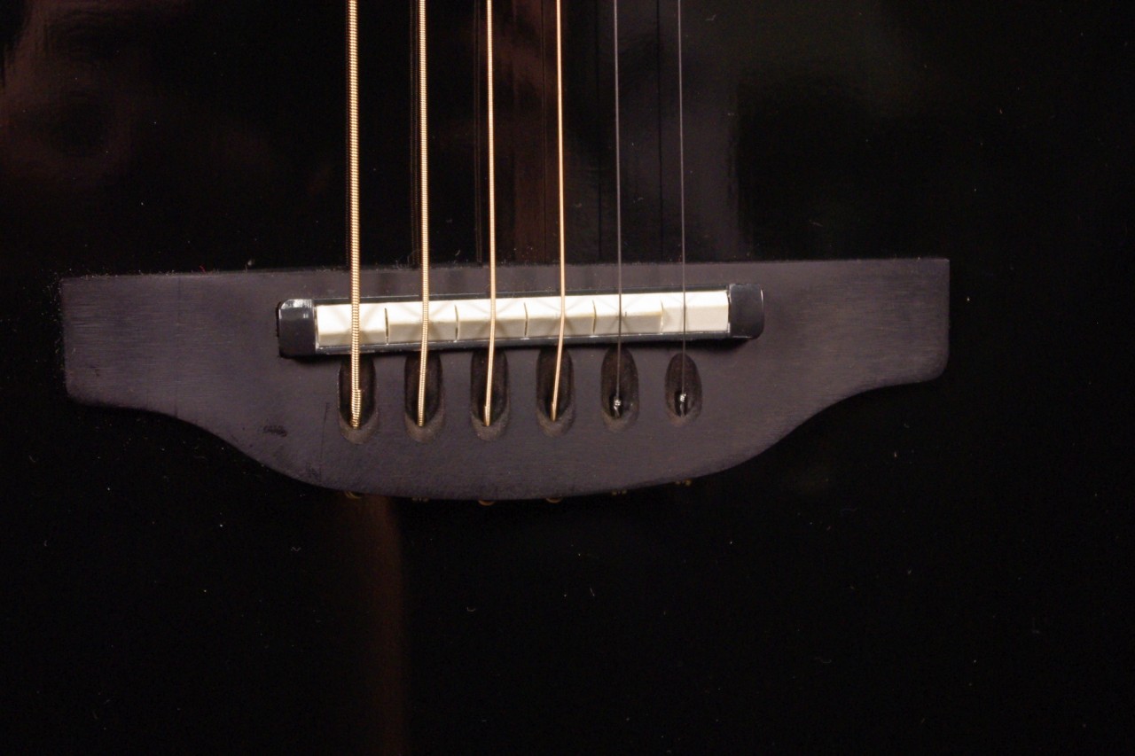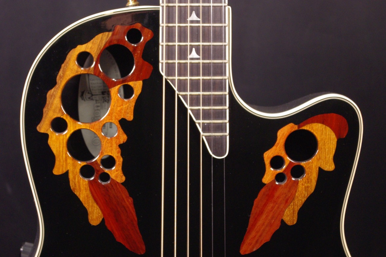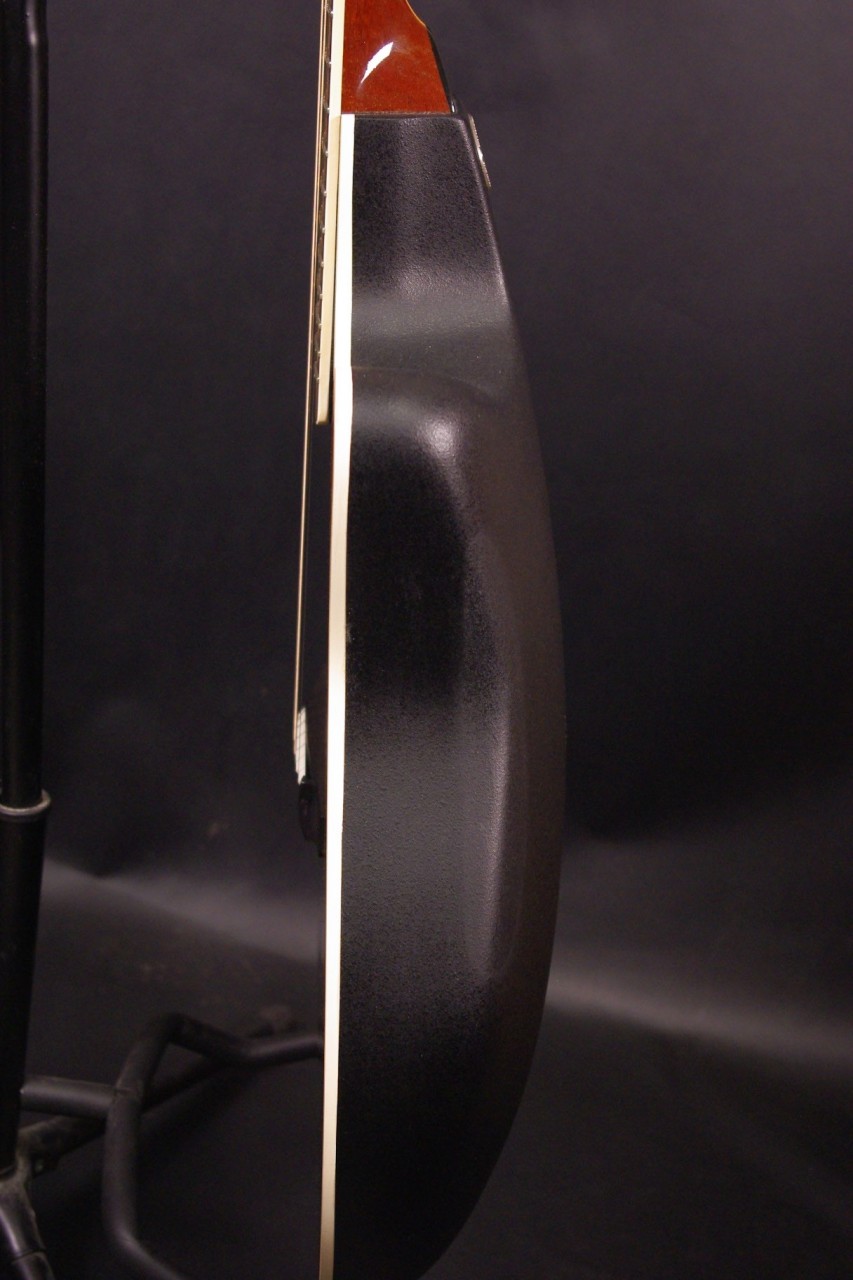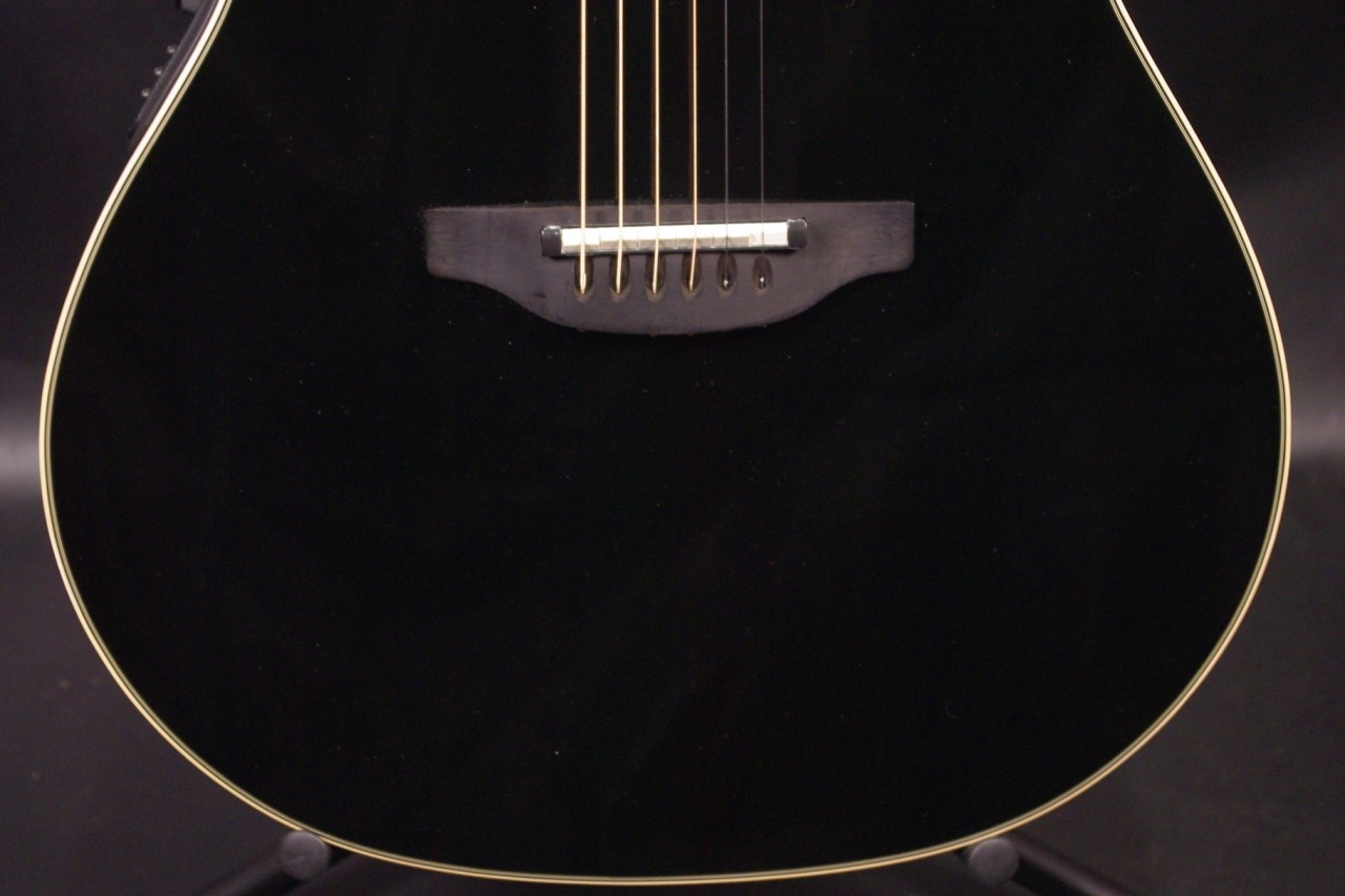 2004年に生産されたOvation Elite LX がブラックフィニッシュで入荷しました!!トップはシトカスプルース、サイドバックにはリラコード、指板とブリッジにはエボニーを採用、ボディは薄いスーパーシャロウボウルにカッタウェイ仕様でライブでも扱いやすくハイポジションまで押さえられるのも魅力です!細かい傷、使用感はありますが20年以上経過しているわりには外観も綺麗で演奏性も優れていますので安心ですゴールドペグ、ピックアップなど主なパーツもオリジナルで残っています。ナット幅は約43mmの標準サイズで幅広い演奏でお楽しみいただけます。ネックのアングルも理想的でトラスロッドの動作にも余裕がありました。フレットの高さもあり長期で安心です。弦高は12フレット6弦側で約2.1mm、1弦側で約1mmの高さでハイポジションまでストレスなく押さえられます。弦高調整に必要なサドル下のシムも数枚入っています。お好みに合せた微調整にもお応えいたします。ピエゾマイクの輪郭のくっきりとしたキレの良いサウンド!電気系の不具合もなくライブでも即戦力でお使いいただけます。エレアコで探していた方はオリジナルハードケース付き