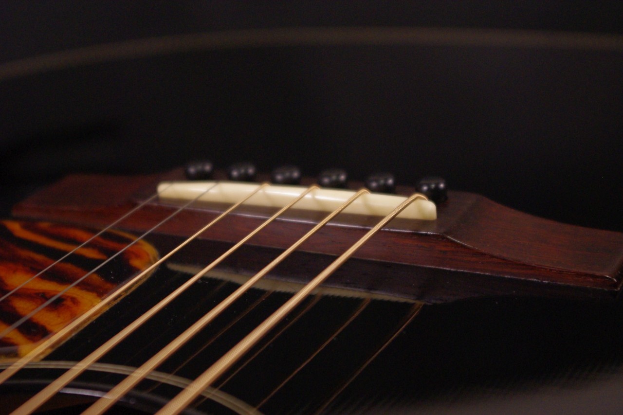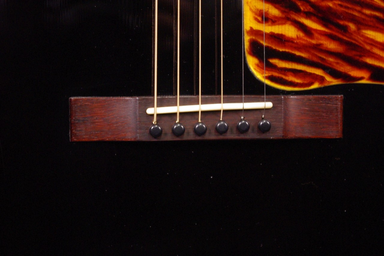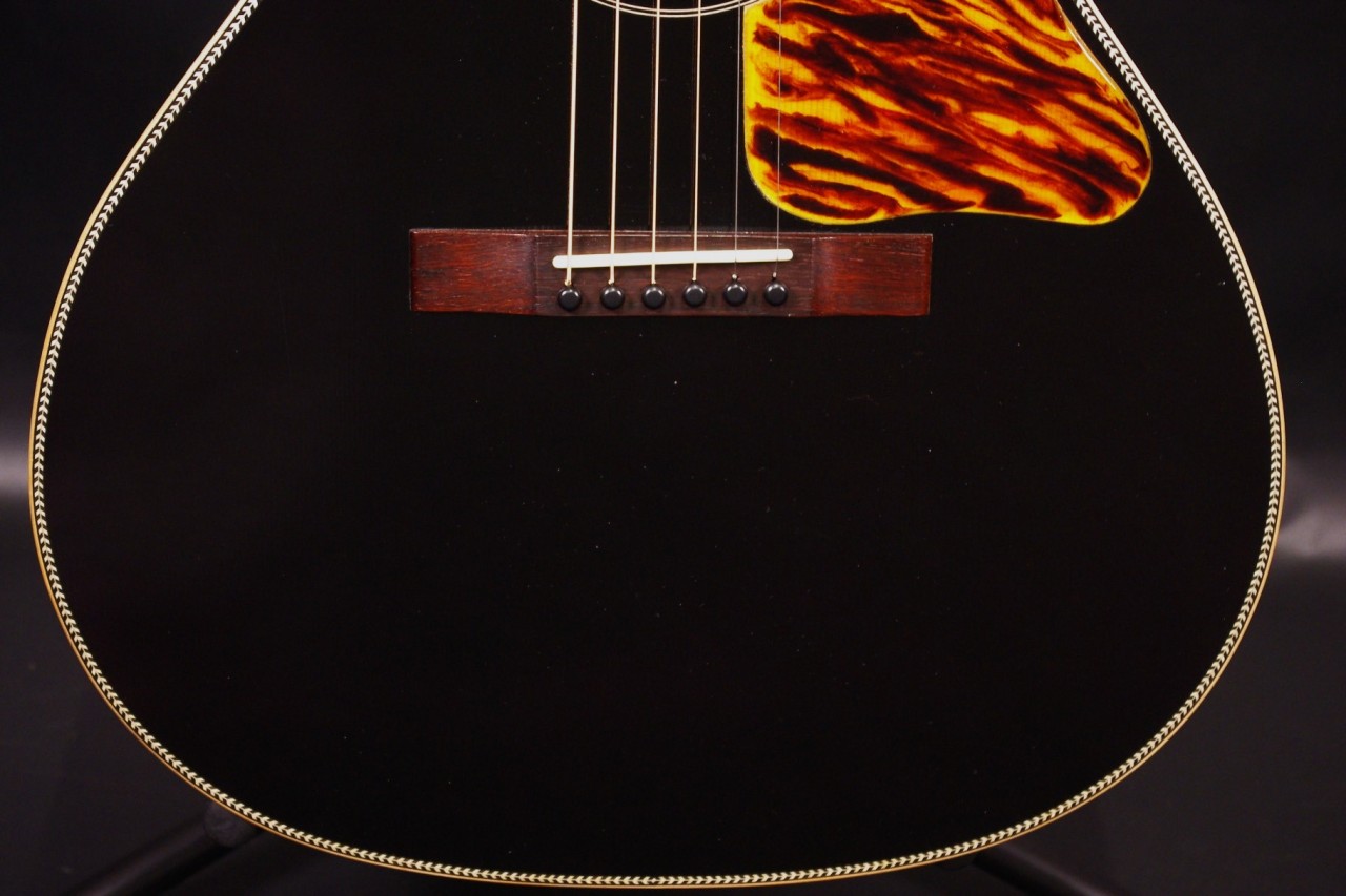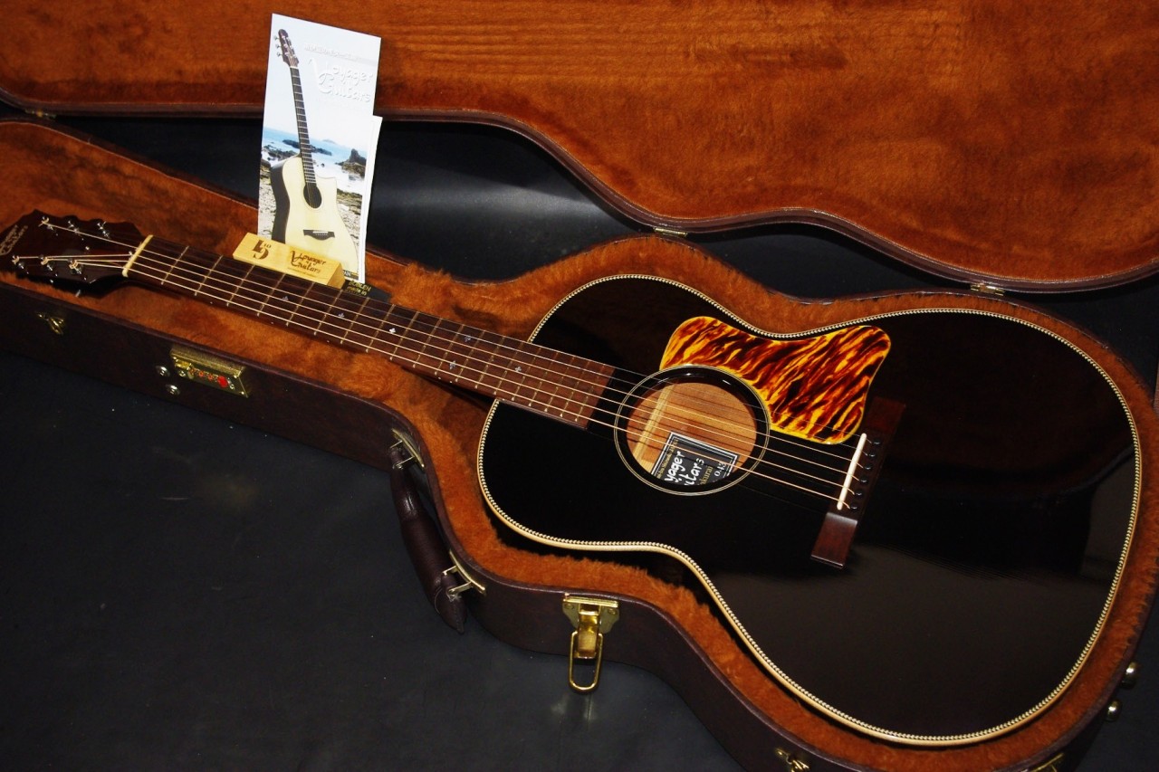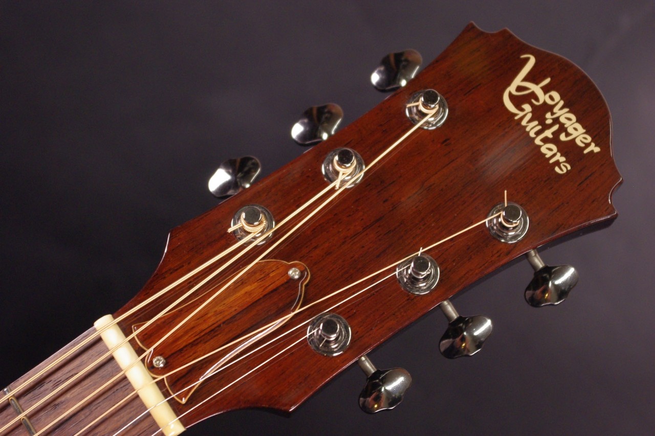 南伊豆町に工房を持つ個人ルシアー桜井氏のブランド!ヴォイジャーギターズのVL-00が入荷しました!!トップはルッツスプルース、サイドバックにはアフリカンマホガニー、指板とブリッジにはマダガスカルローズウッドの厳選された材を採用、ピックガードは樹脂で一枚ずつ手作業で製作されており雰囲気が出ています!ゴトー製のオープンバックペグ、ブリッジなど主なパーツもオリジナルで残っていました。生産から数年経過しており多少の傷、使用感はありますが全体的に綺麗で演奏性、サウンドも優れています!!ネックヒールへのストラップピン加工、ピックアップの取り付け加工もございません。ナット幅は約43mmの太すぎないしっかりとしたグリップです。ネックのアングルも理想的でトラスロッドの動作も問題なく機能しています。フレットの減りも少なめで長期で安心いただけます。弦高は12フレット6弦側で約2mm、1弦側で約1.3mmの高さでハイポジションまで押さえやすく調整しています。ブリッジからサドルも高さがあり将来の微調整も安心です。コンパクトなボディサイズで重量も軽く手軽にお楽しみいただける1本です!レスポンスが素早く音量もあり軽いタッチで前に抜けてくれますね!特にフィンガーピッキング中心で演奏される方に一押し!是非弾いてみてください!ハードケース付き
