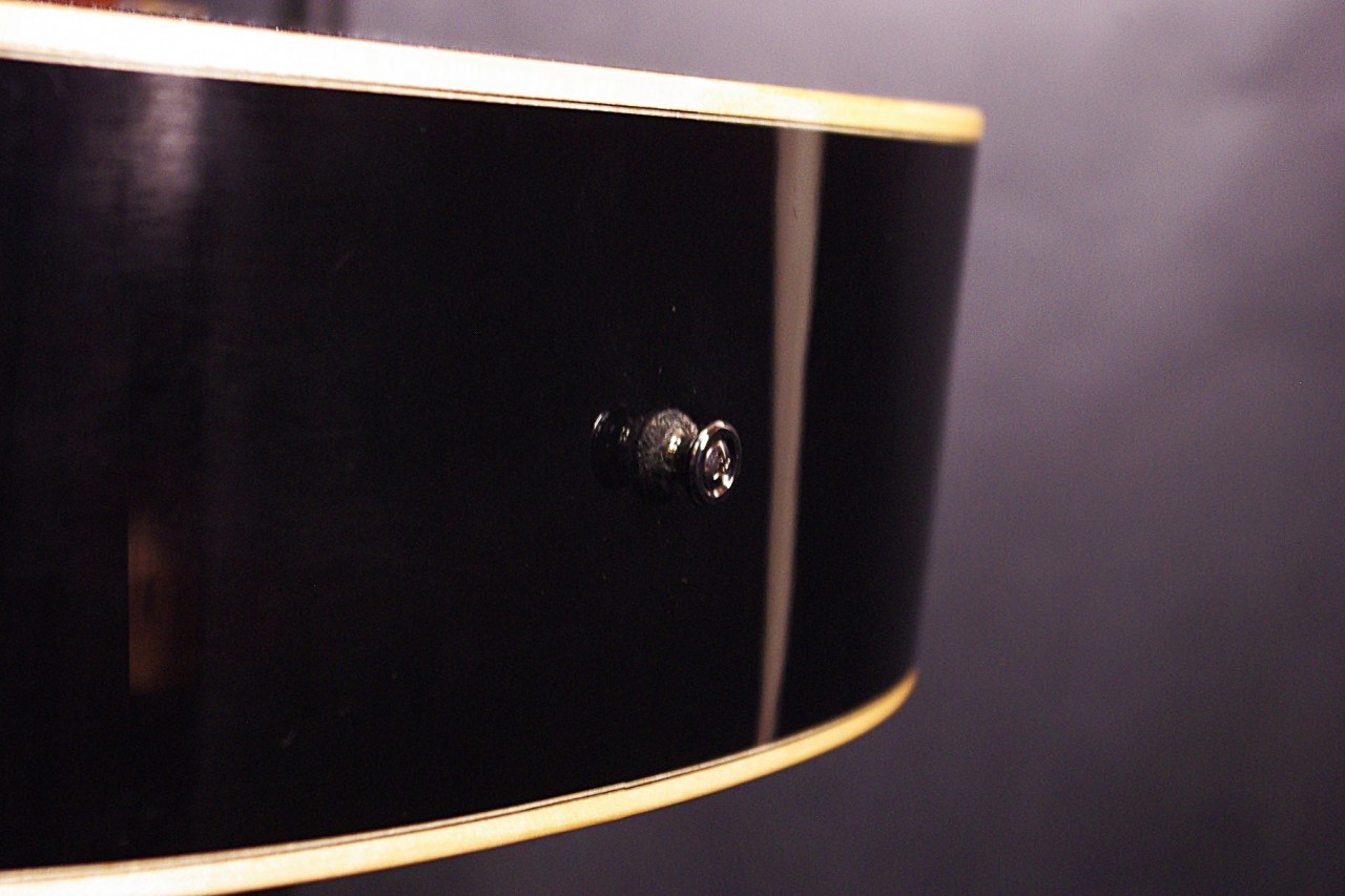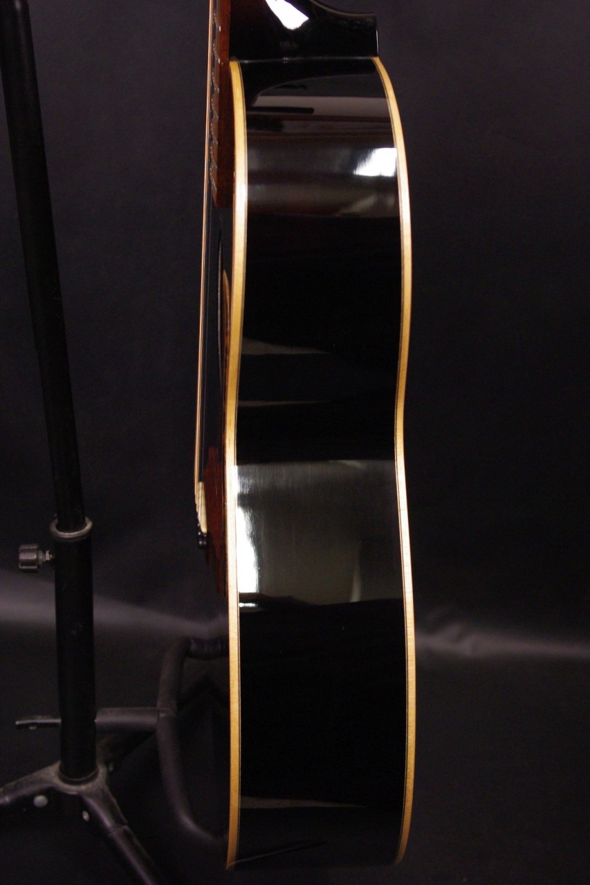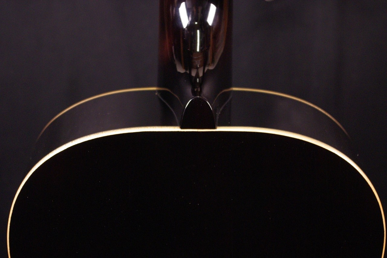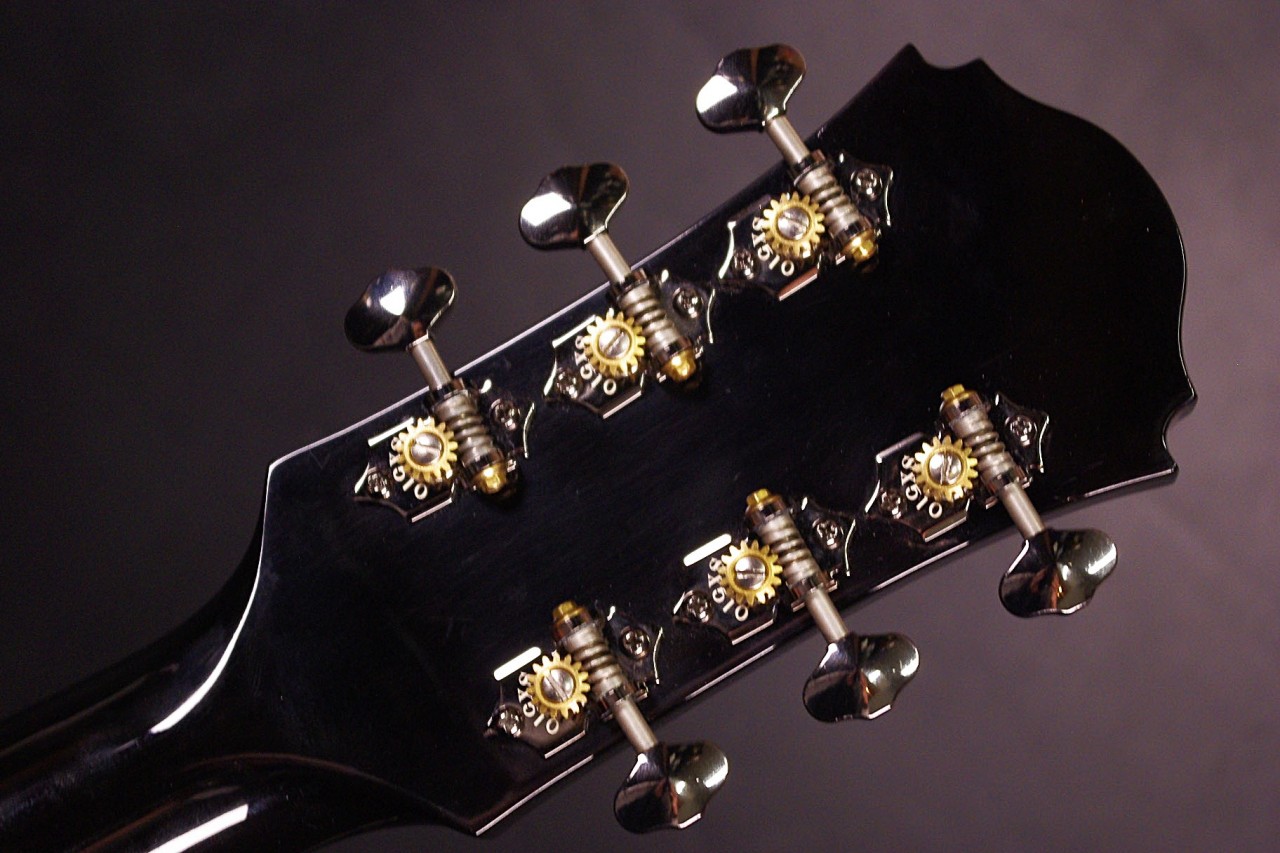 トップ ルッツスプルース単板、サイドバック アフリカンマホガニー単板、指板・ブリッジ マダガスカルローズウッド、ネック ホンジュラスマホガニー、オリジナルゴトー製オープンバックペグ、オリジナルピックガード、Xブレーシング、ヘリンボーンバインディング、ダイヤモンドポジションインレイ、