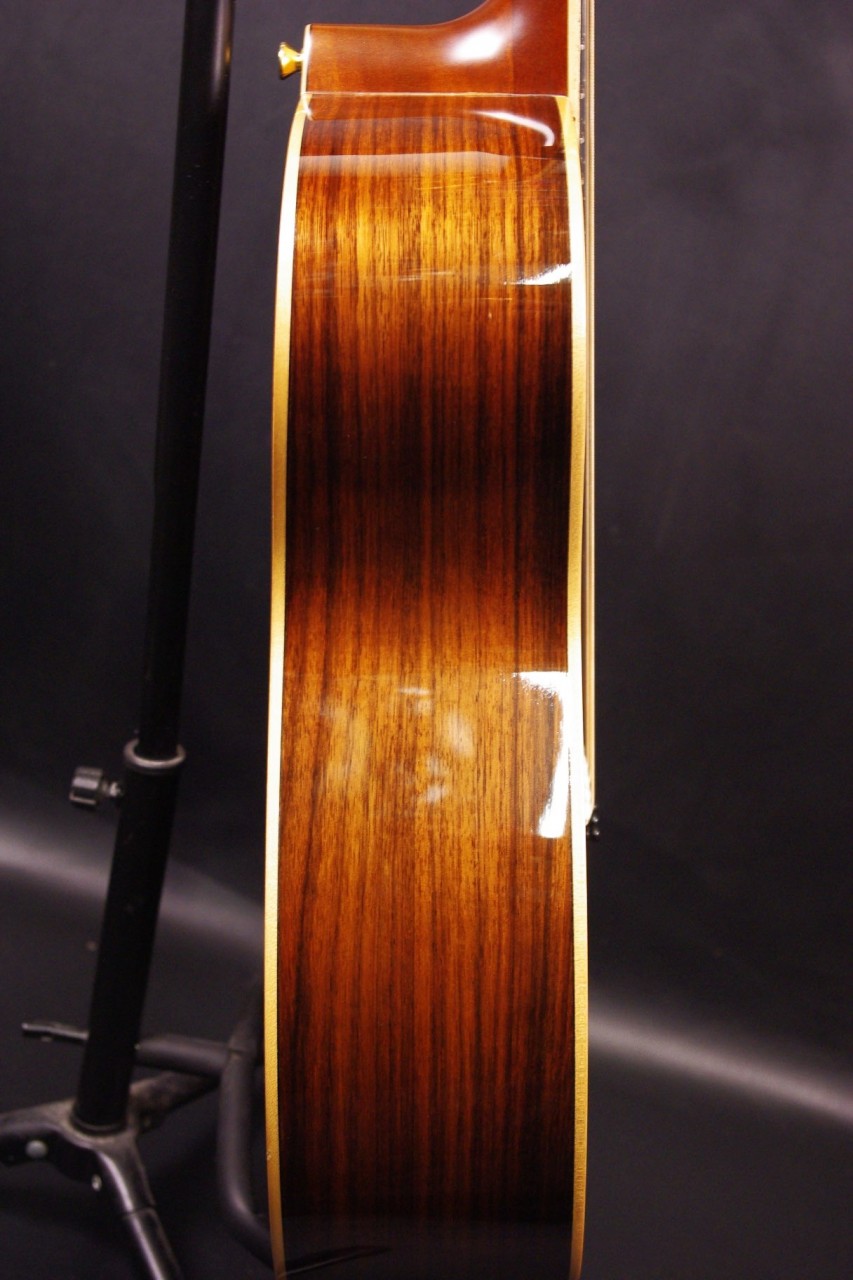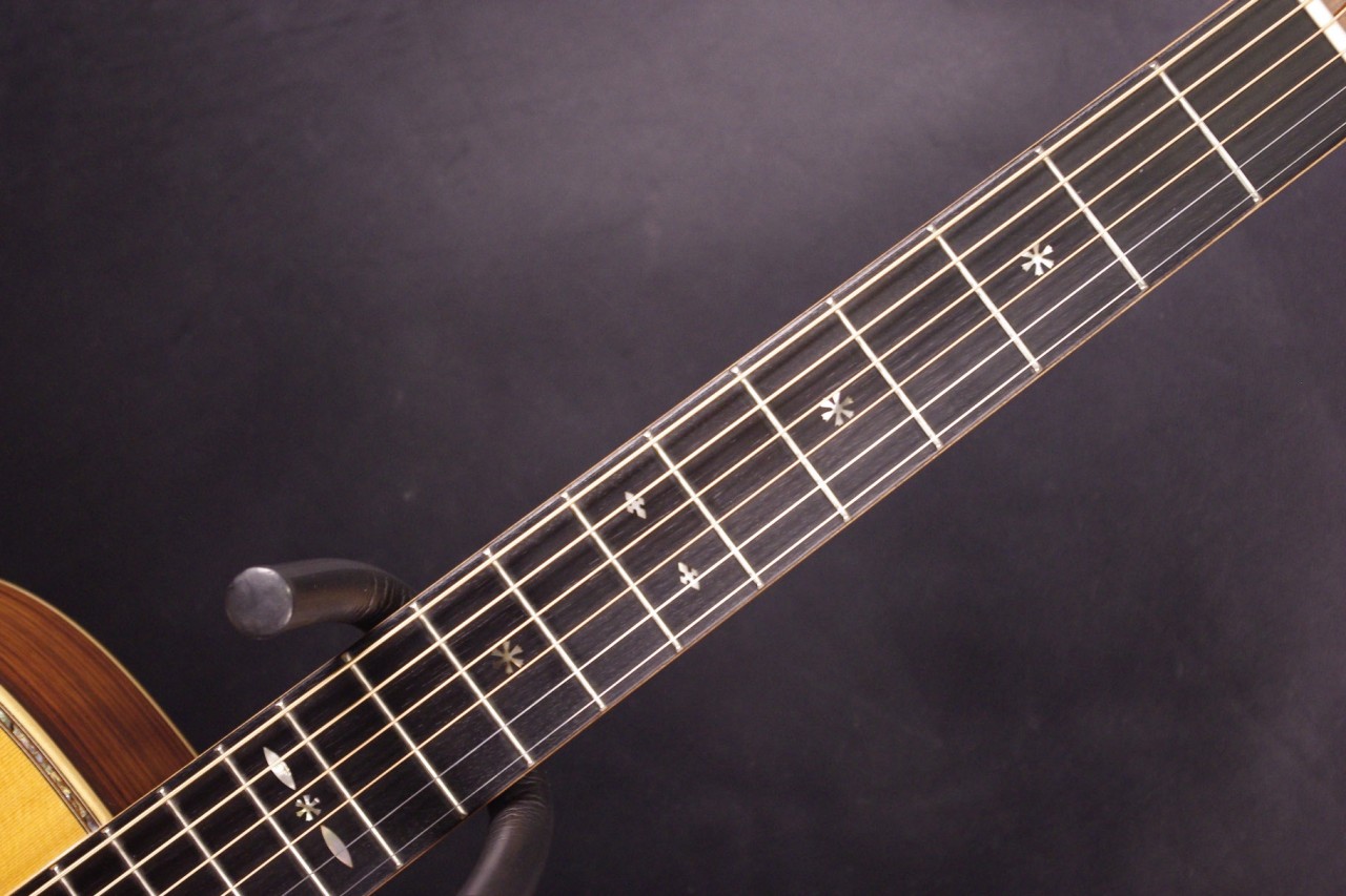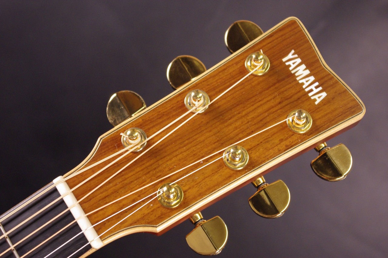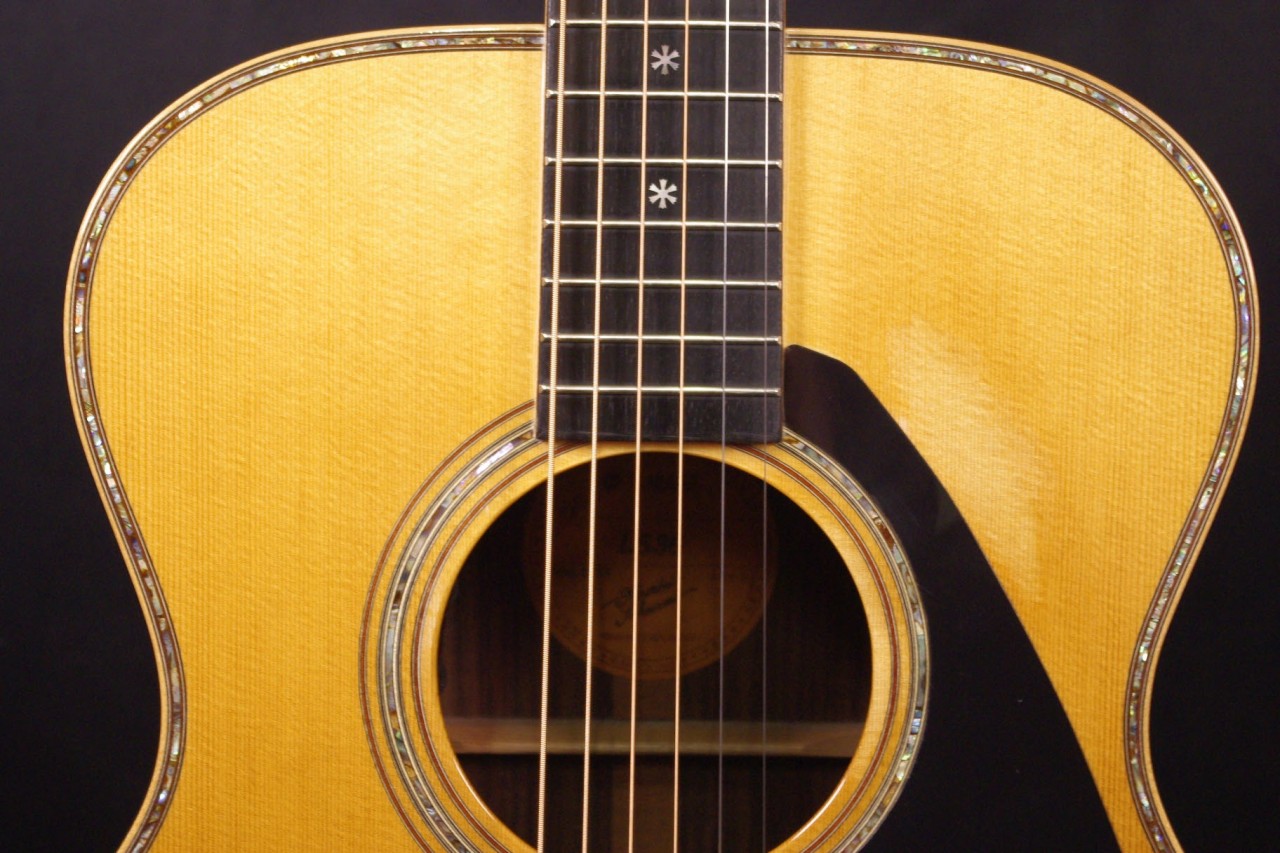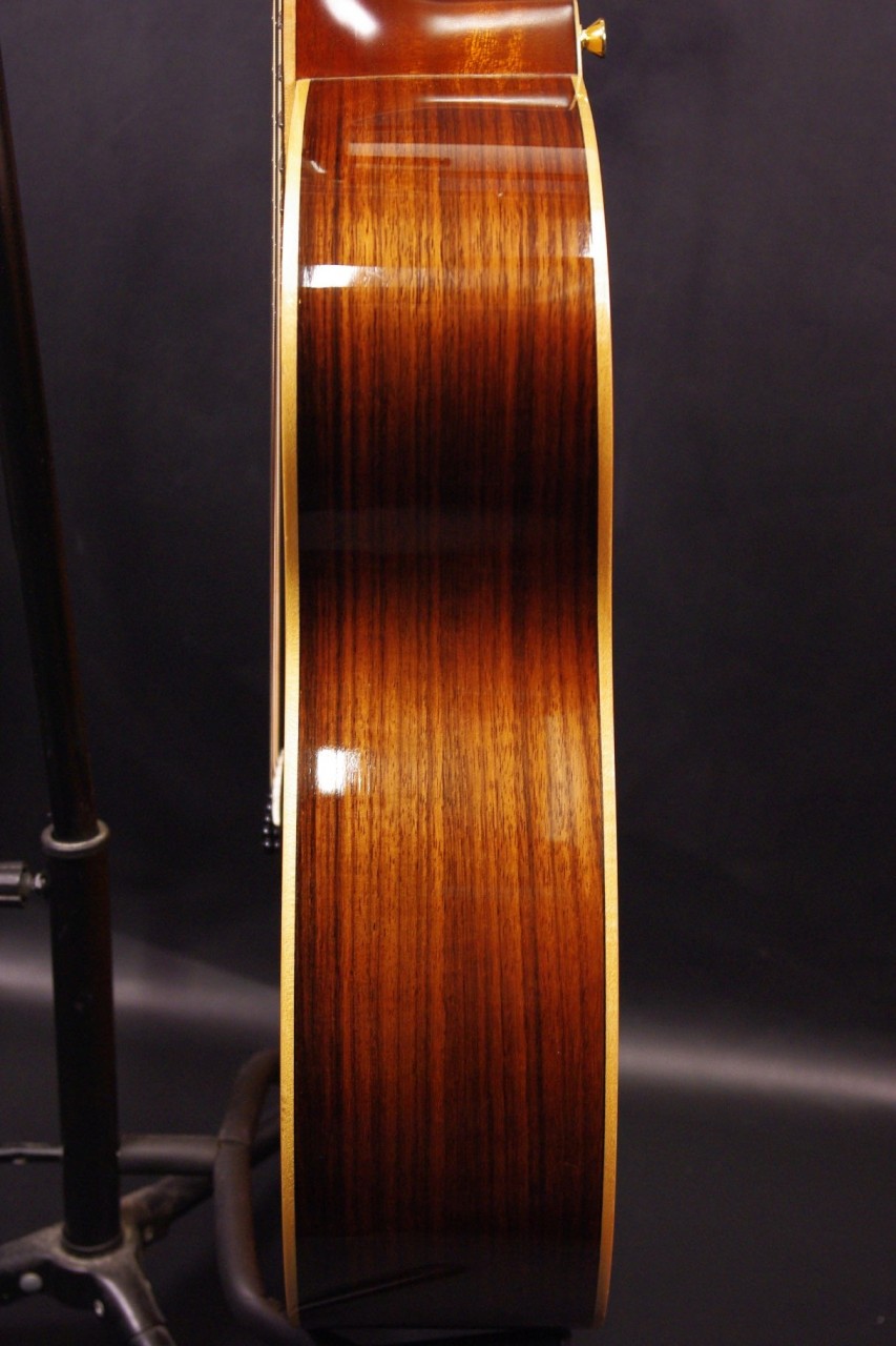 トップ AREイングルマンスプルース単板、サイド・バック インドローズ単板、指板・ブリッジ エボニー、ネック マホガニー&ローズウッド5ピース、オリジナルYAMAHAゴールドペグ、ブラックピックガードチェンジ、Xブレーシング、