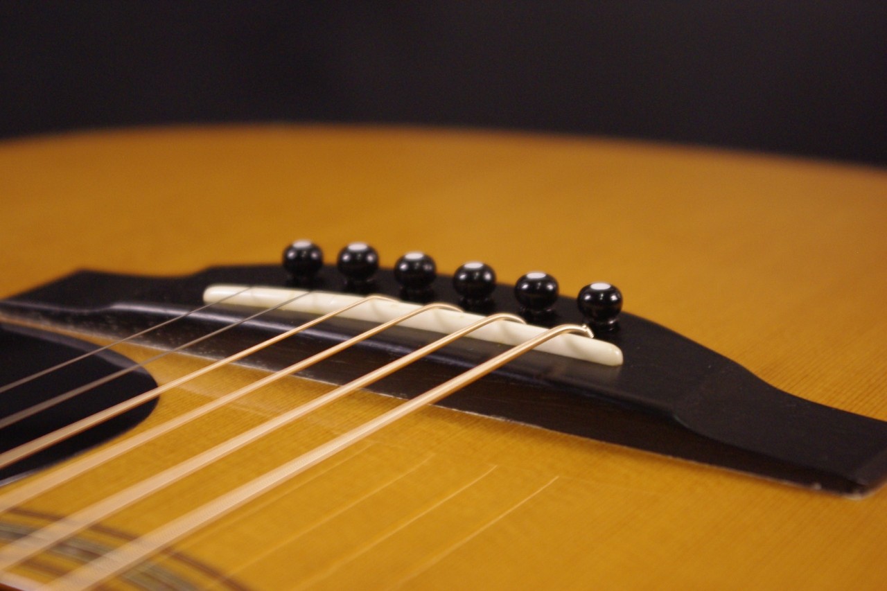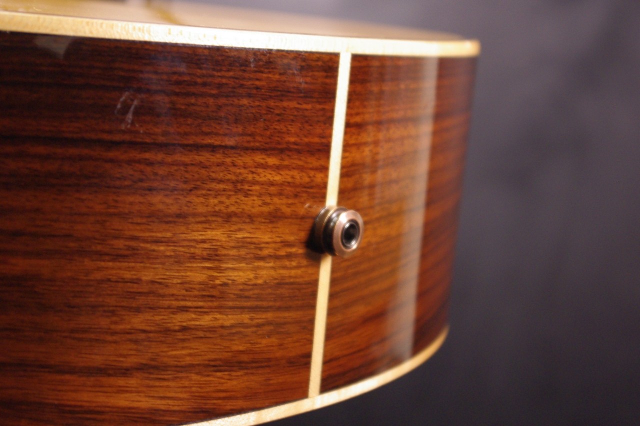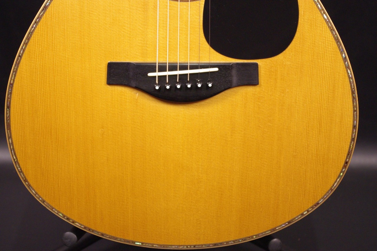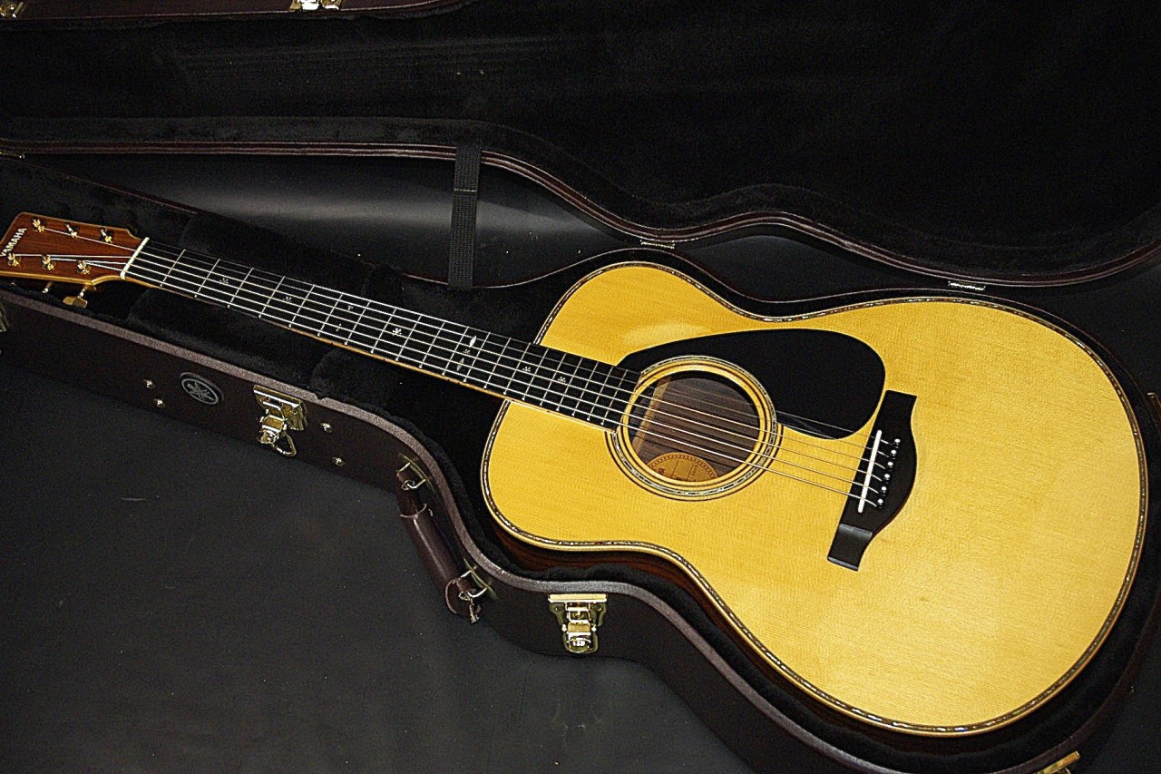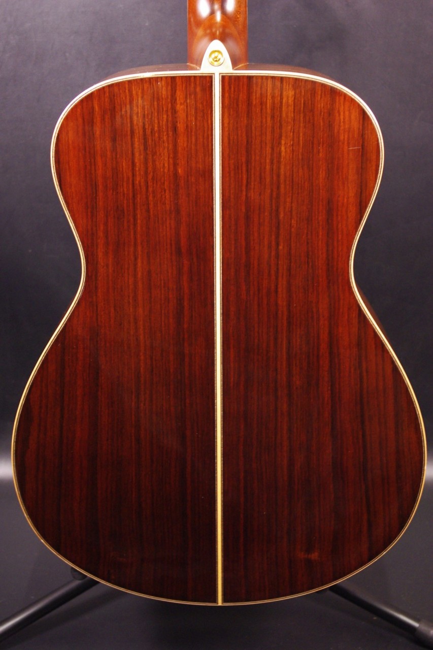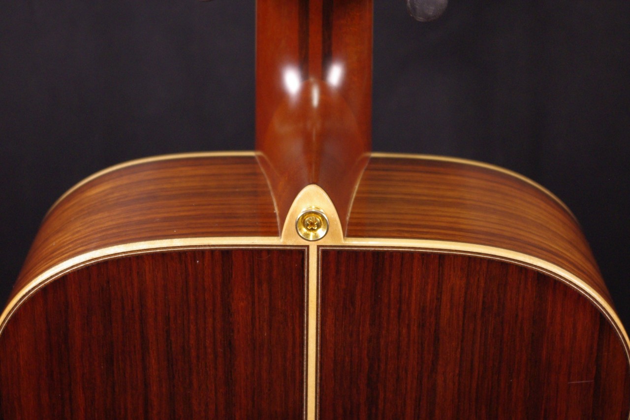 トップ AREイングルマンスプルース単板、サイド・バック インドローズ単板、指板・ブリッジ エボニー、ネック マホガニー&ローズウッド5ピース、オリジナルYAMAHAゴールドペグ、ブラックピックガードチェンジ、Xブレーシング、