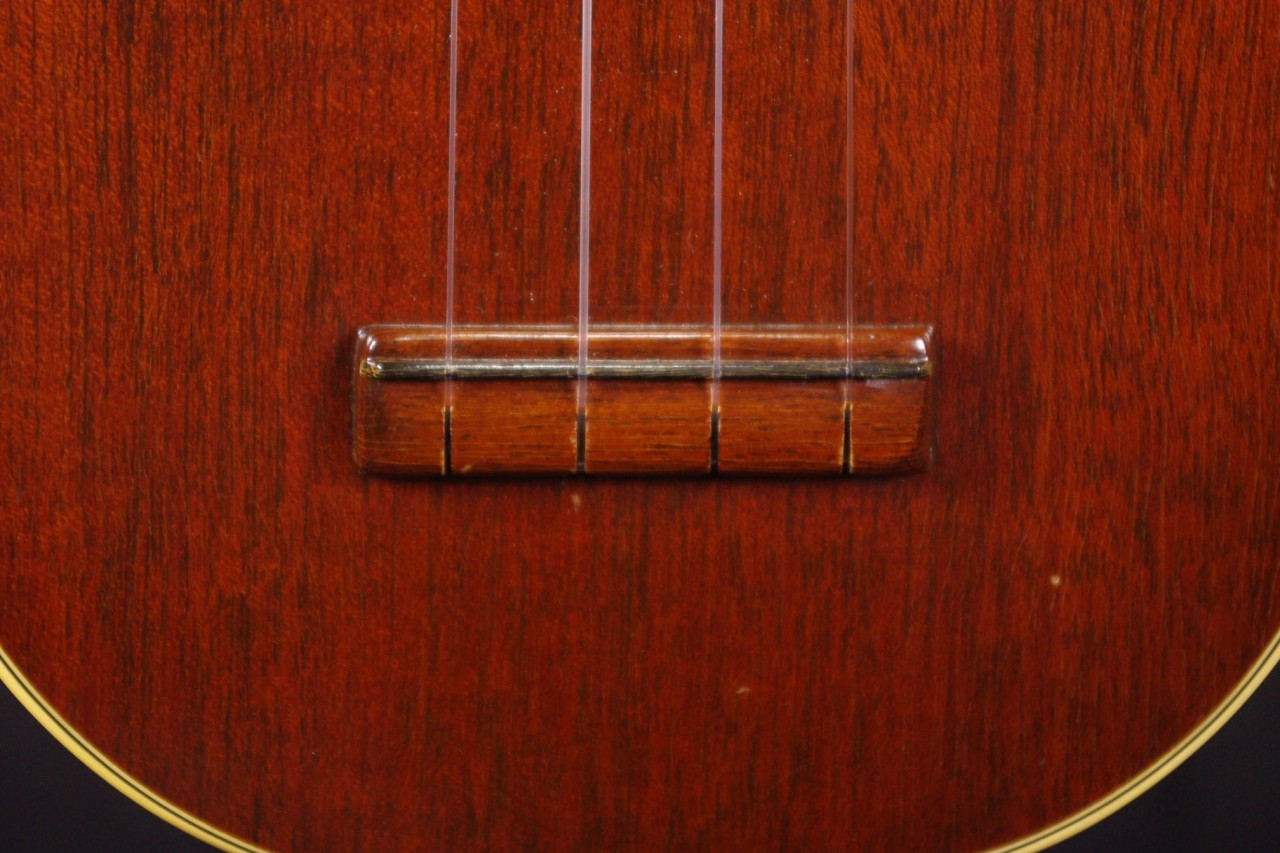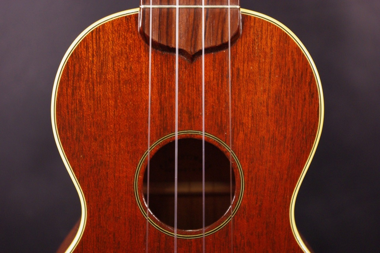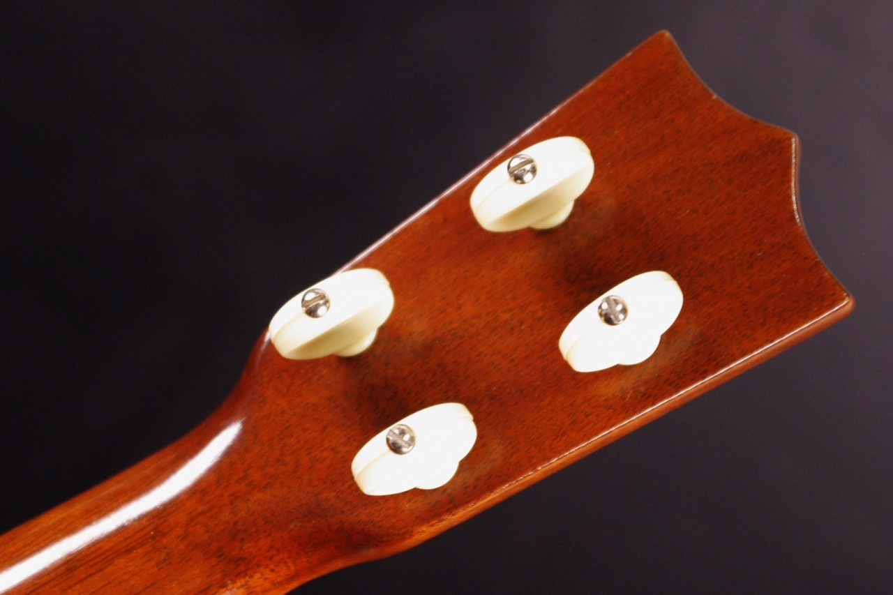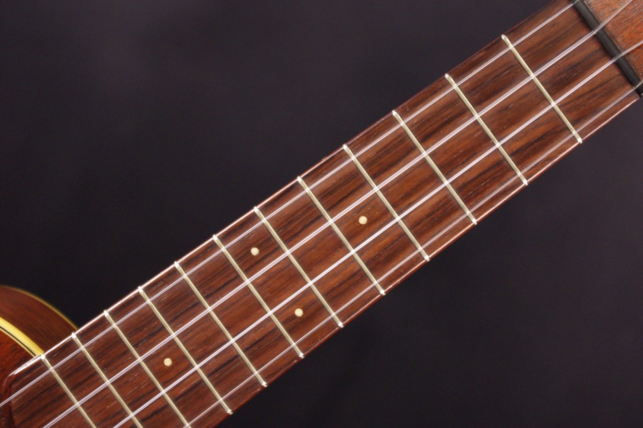 1950年代から1960年初期に生産された貴重なマーティンのウクレレ!Style-2Mが極上コンディションで入荷しました!ボディにはマホガニー、指板にはハカランダを採用したソプラノサイズのウクレレでトップとバックにはアイボリーのバインディングが施されています。ボディ内部の刻印、スペックから1950年代から1960年代初期に製造された個体で目立った傷もなく最高に綺麗に残っていました!音も良いですがコレクションとしてもお楽しみいただけるコンディションでしょう!ペグ、ブリッジもオリジナルでストラップピンやピックアップなど特別な加工もございません。ナット幅は約34.5mm、ネックのアングルも適正でフレットの状態も良いです。弦高は12フレット4弦側で約2.1mm、1弦側で約2mmの高さ押さえやすく調整されています。マホガニーのカラッと明るく乾いた歯切れの良いサウンドが特徴!音量も十分で特に弾き語りにおすすめですね!!是非この機会にお試しください。おすすめです!チップボードケース付き
