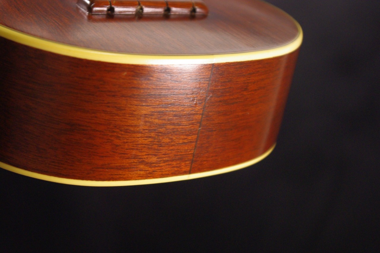 トップ マホガニー、サイド・バック マホガニー、指板 ハカランダ、ブリッジ マホガニー、ネック マホガニー、オリジナルペグ、トップバックバインディング、12フレットジョイント、