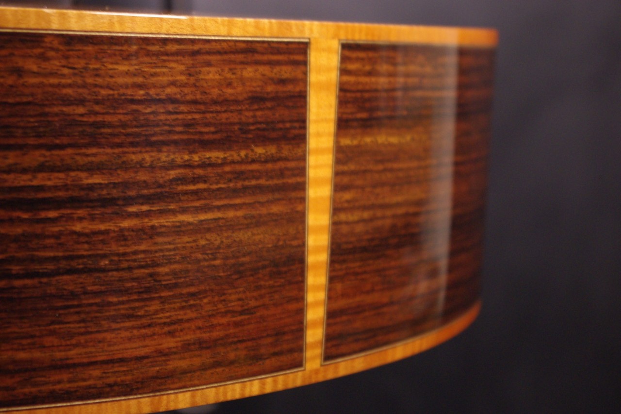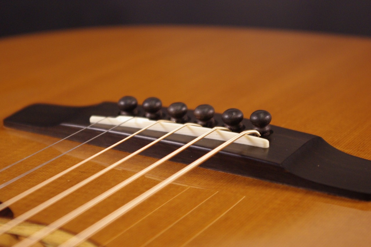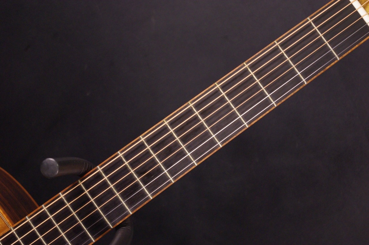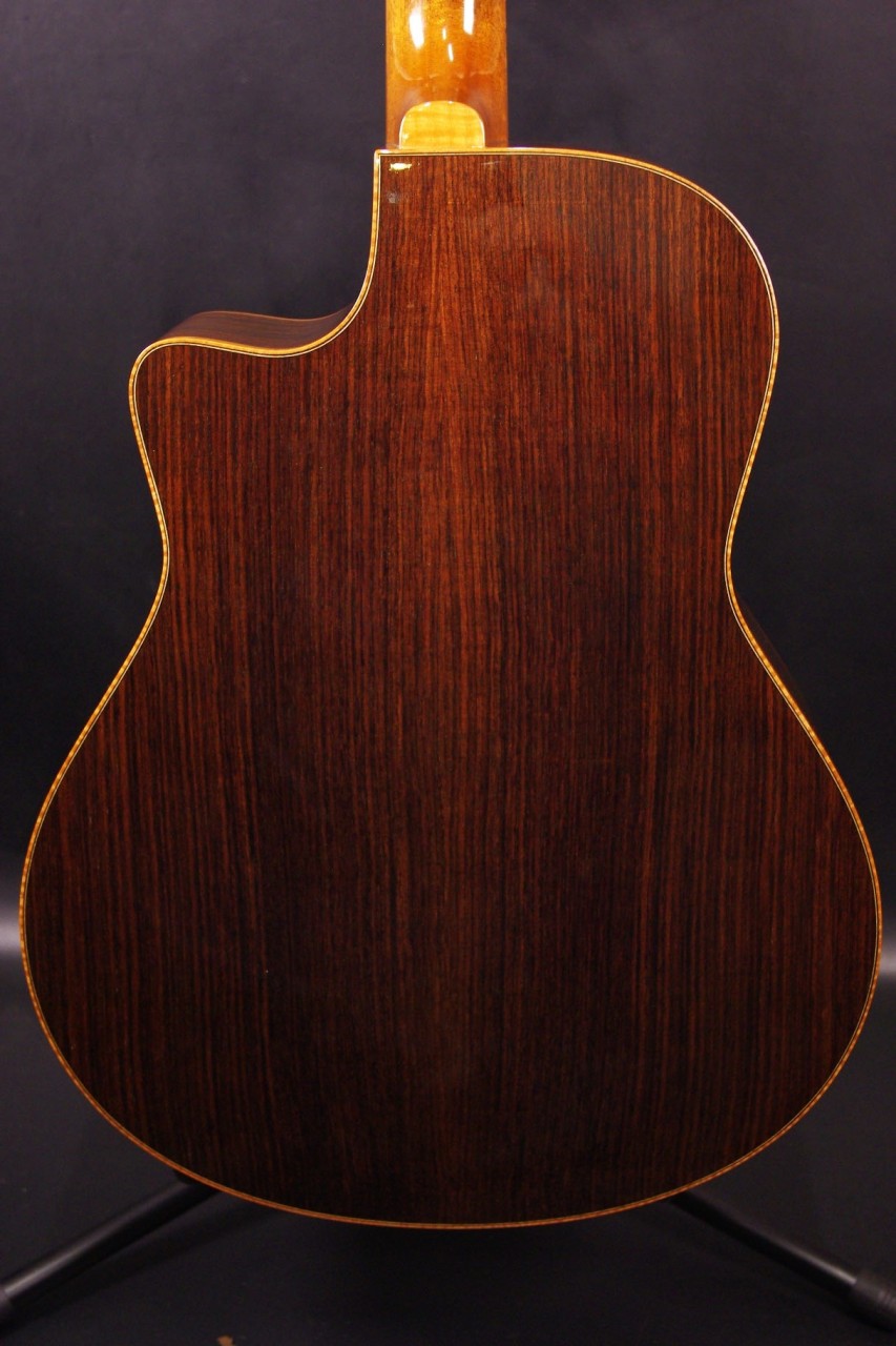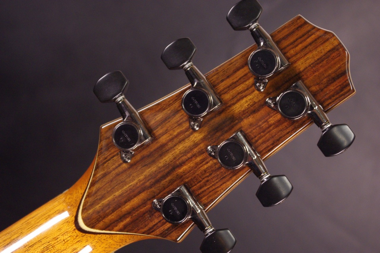 トップ レッドシダー、サイドバック インディアンローズウッド、指板・ブリッジ エボニー、ネック マホガニー1ピース、オリジナルペグ、カッタウェイ、スキャロップドラティスブレーシング、ウッドバインディング、