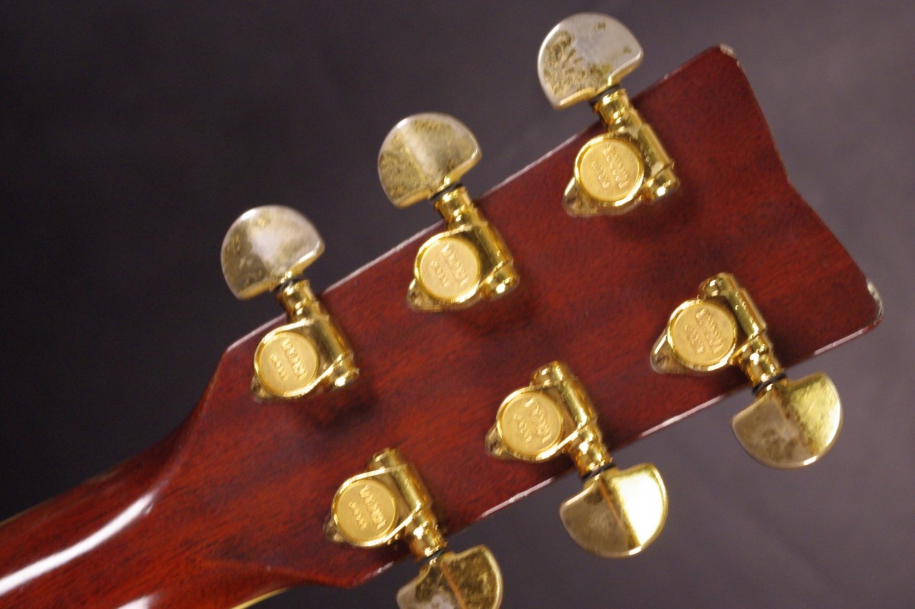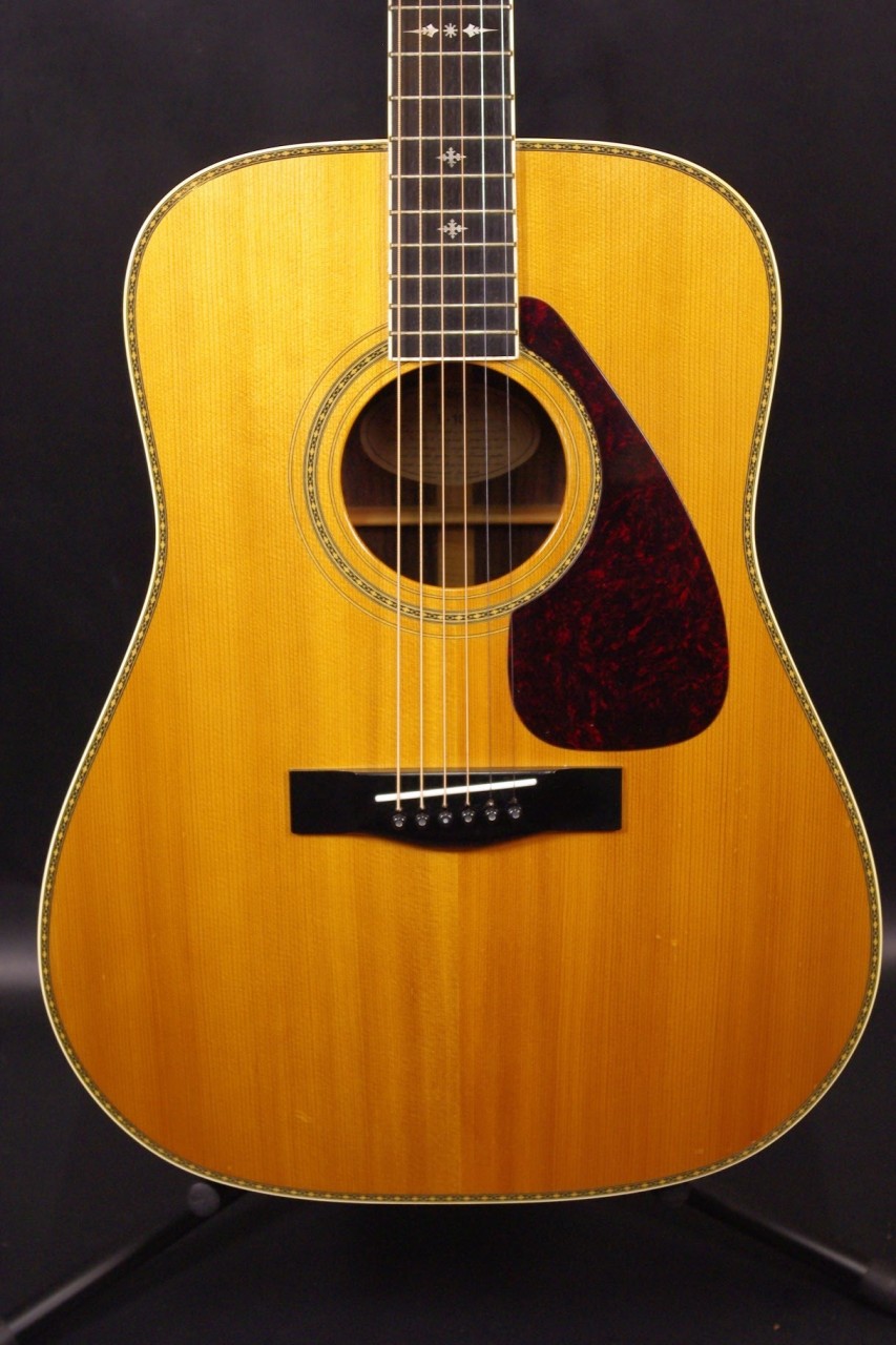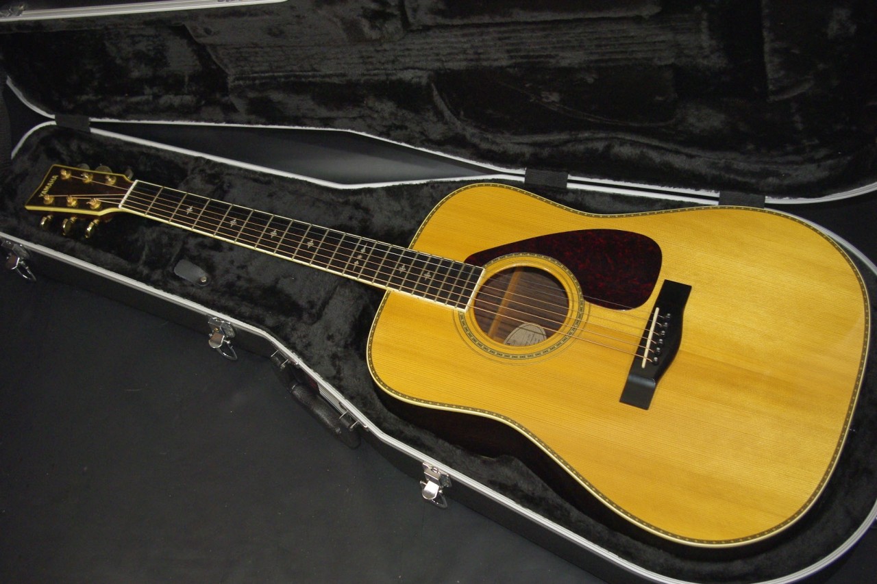 1980年代に生産されたL-10後期が入荷しました!!トップはえぞ松、サイドバックにはパリサンドルのオール単板を採用、シリアルナンバーとスペックから1983年製が有力でネックボディに細かい傷はありますが40年以上経過しているわりには綺麗に残っています。ゴールドペグ、べっ甲柄ピックガードなど主なパーツもオリジナルで残っています。ネックヒールへのストラップピンやピックアップなど特別な加工もございません。ナット幅は約44mm近くのやや太めのしっかりとしたグリップになります。ネックのアングルも理想的でトラスロッドの動作も問題なく機能しています。フレットは多少の減りは出ていますがまだまだお使いいただけます。弦高は12フレット6弦側で約2.3mm、1弦側で約1.5mmの高さでハイポジションまで押さえやすく調整しています。ブリッジもオリジナルの高さをキープしておりサドル残もありますので微調整も可能です。サドルは牛骨材で仕上げていますので音も良いです!力強い低音、ヤマハらしいキラキラとした煌びやかな高音が魅力!ピックを使っても指で弾いてもバランスがよく気持ちよく抜けてくれます!是非この機会にお試しください。おすすめ!!汎用ハードケース付き