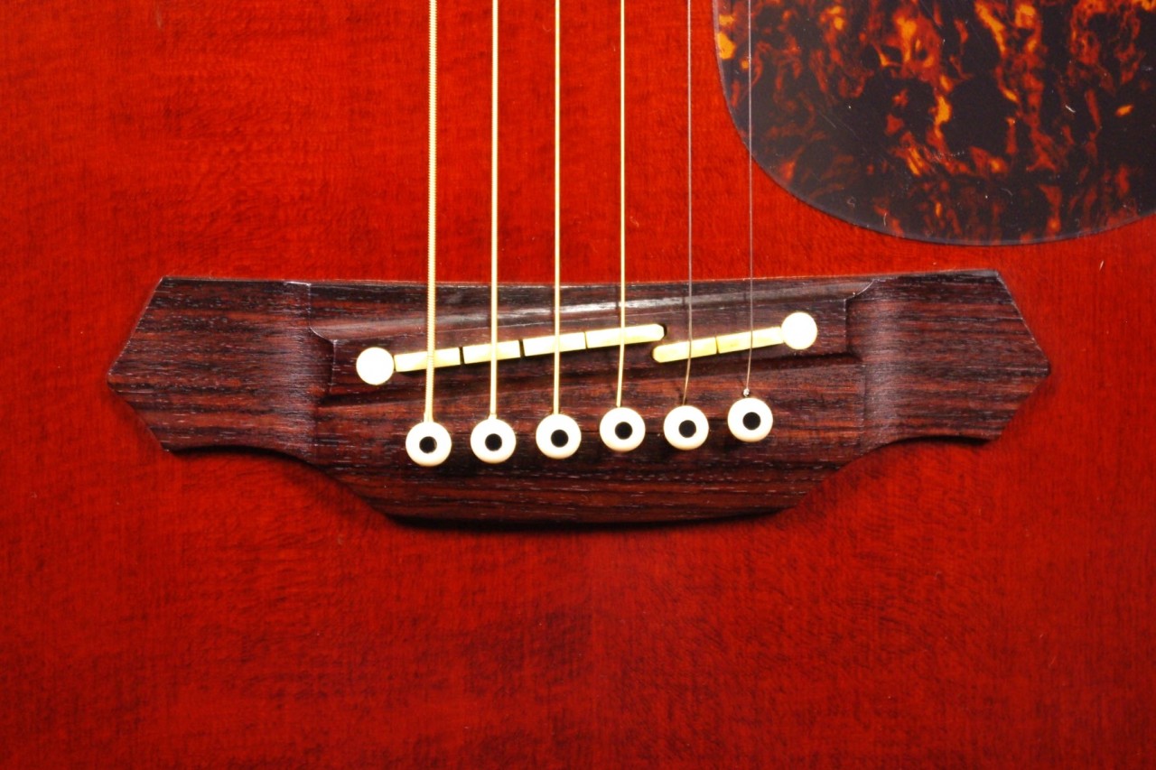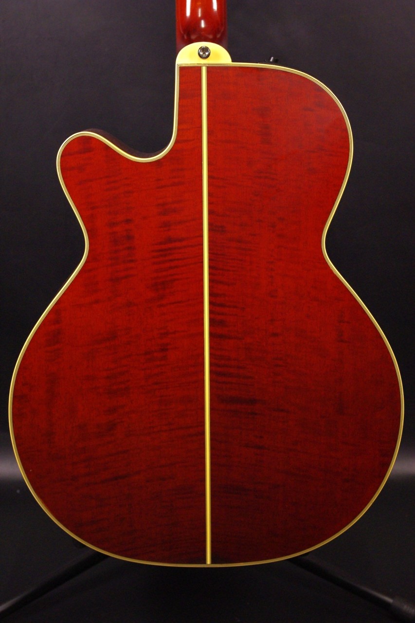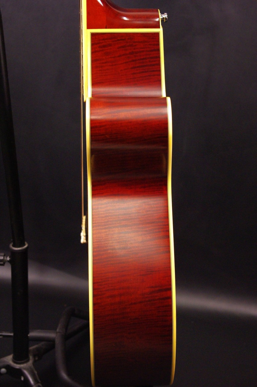 トップ スプルース単板、サイドバック メイプル、指板・ブリッジ エボニー、ネック メイプル、オリジナルゴールドペグ、べっ甲柄ピックガード、カッタウェイ、Xブレーシング、パラスティックステレオピックアップシステム搭載、