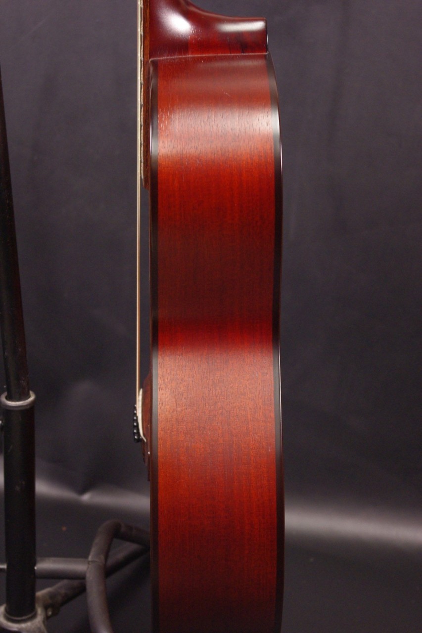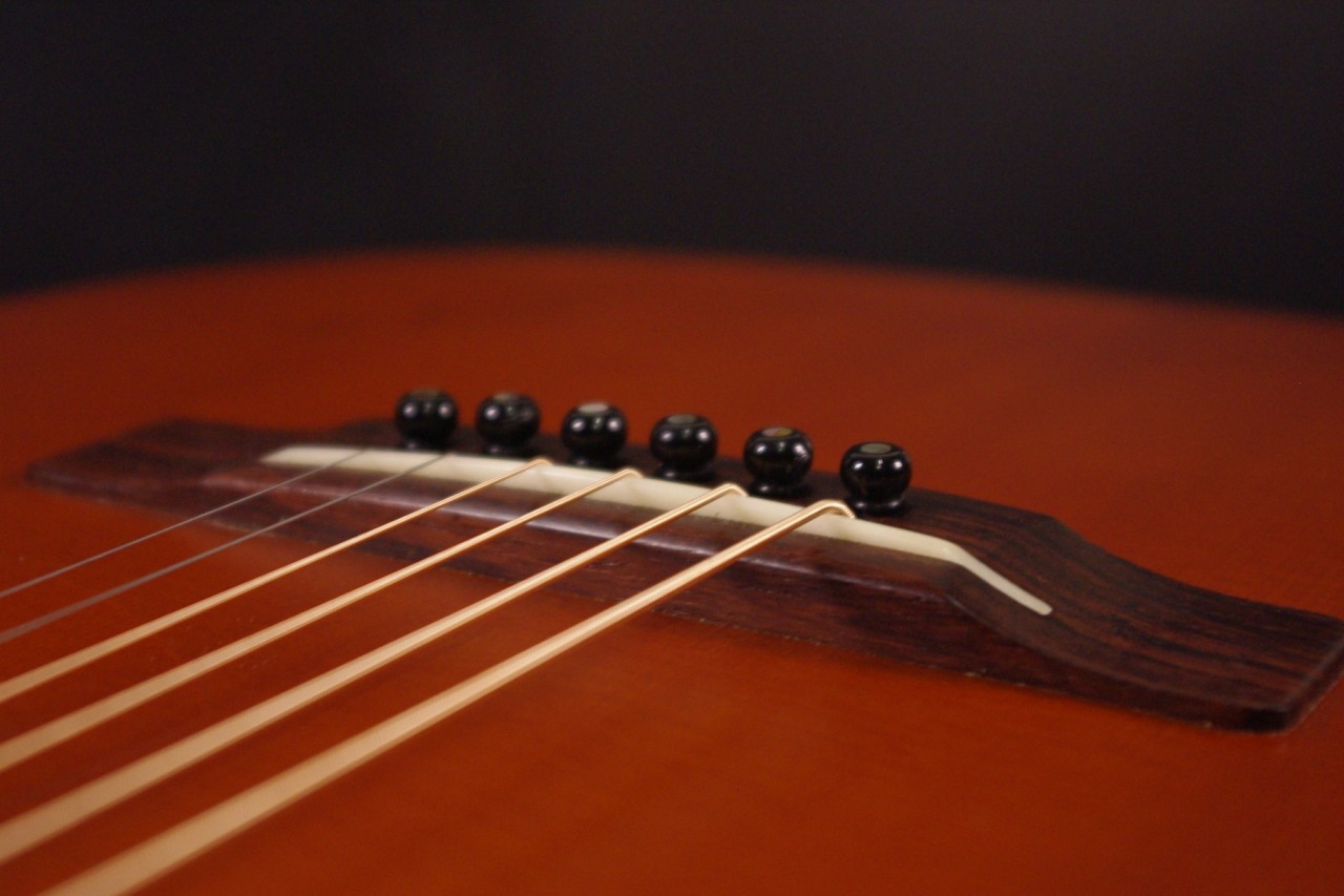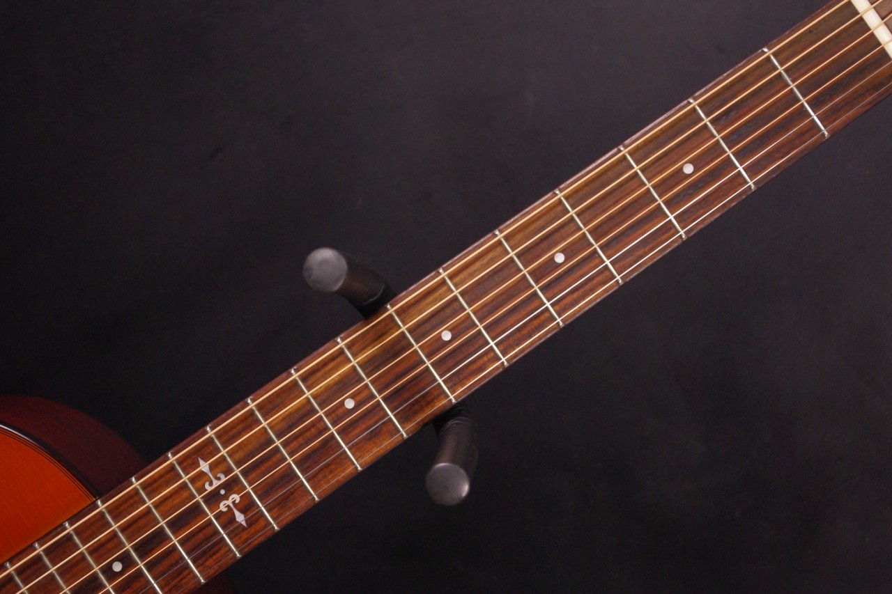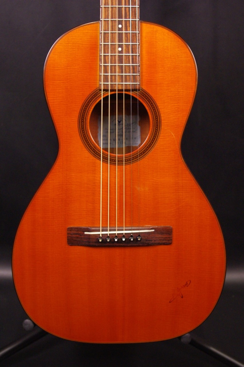 2009年製のK.YAIRI RAG-65-14が入荷しました!!トップはスプルース単板、サイドバックにはマホガニーの合板を採用、コンパクトなボディ形状で手軽にお楽しみいただけるモデルです!14フレットジョイントが特徴で弦長も650mm近くありますのでしっかりと音も抜けてくれます!生産から15年以上経過していますが使用感も少なく綺麗で演奏性も充実しています。ペグ、ブリッジもオリジナルでネックヒールへのストラップピンやピックアップなど特別な加工もございません。ナット幅は約42mmのやや薄めのグリップで一般的なアコースティックギターと変わらないサイズ感です。ネックのアングルも理想的でトラスロッドの動作も問題なく機能しています。フレットは少々の減りは出ていますが長期で安心です。弦高は12フレット6弦側で約2.1mm、1弦側で約1.2mmの高さで押さえやすく調整しています。お好みに合わせた微調整にもお応え致します。明かるく軽快なサウンドで指で弾いても粒立ちが良くすっくりと前に抜けてくれます!くつろぎながら弾きらくなる1本でしょう!是非この機会にどうぞ!オリジナルハードケース付。
