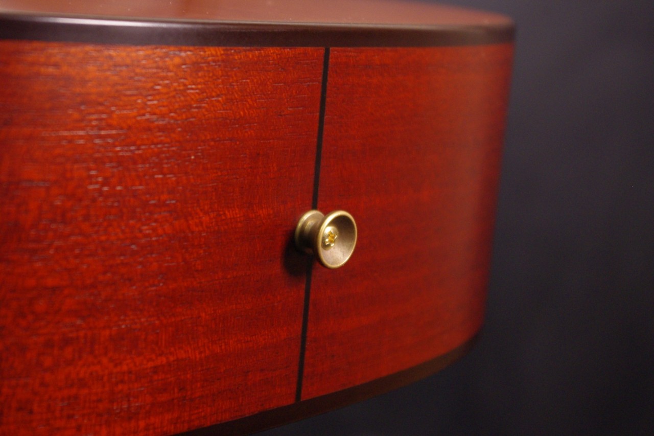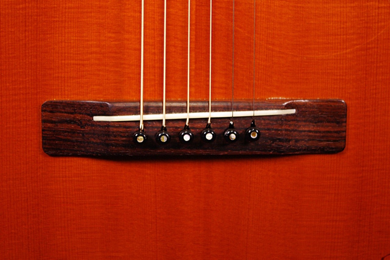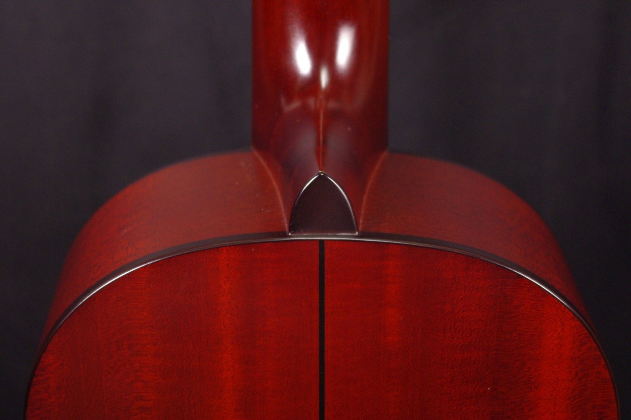 トップ スプルース単板、サイドバック マホガニー合板、指板・ブリッジ ローズウッド、ネック マホガニー、オリジナルK.YAIRIペグ、オリジナルピックガード、Xブレーシング、ロングサドル、14フレットジョイント、