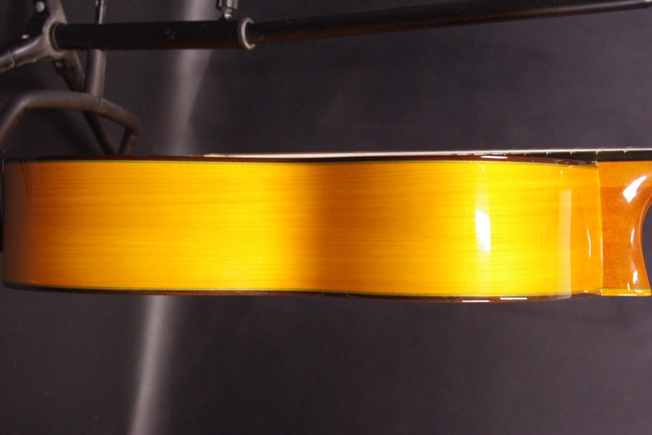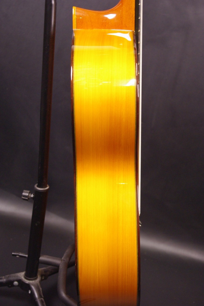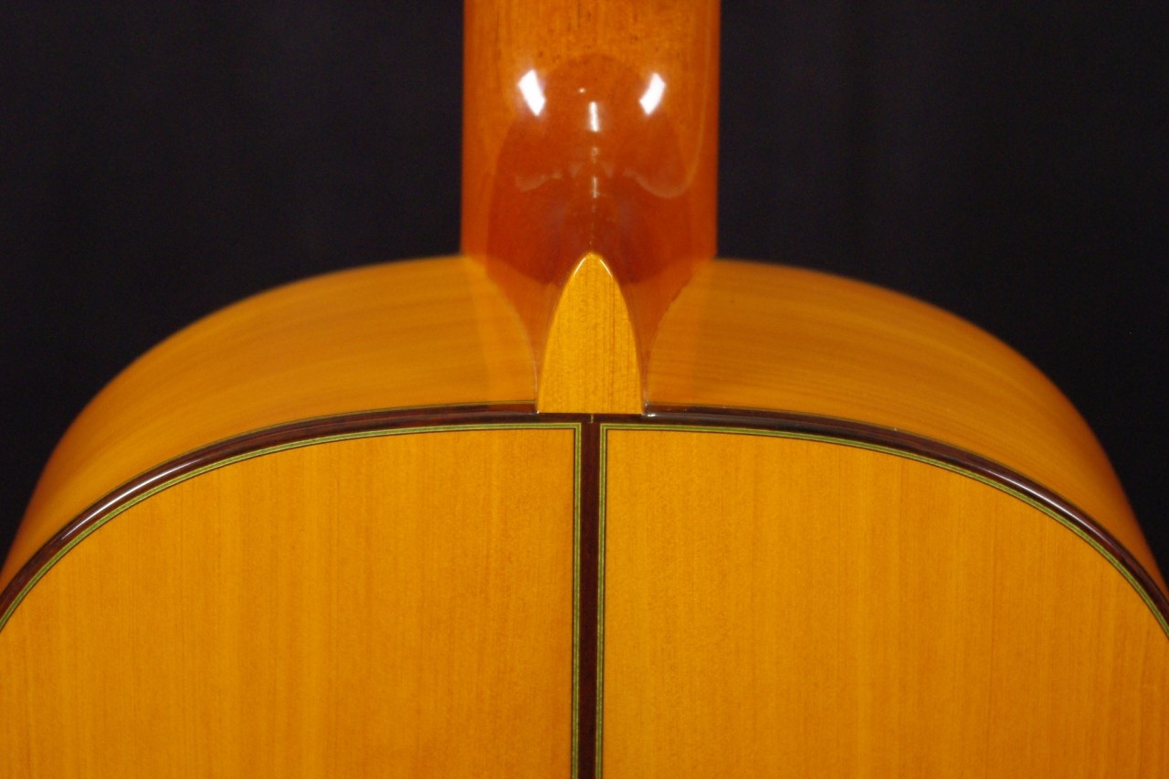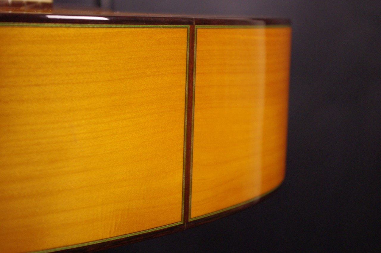 トップ スプルース、サイドバック シープレス、指板 エボニー、ブリッジ ローズウッド、ネック マホガニー、オリジナルゴールドペグ、ウッドバインディング、ファンブレーシング、