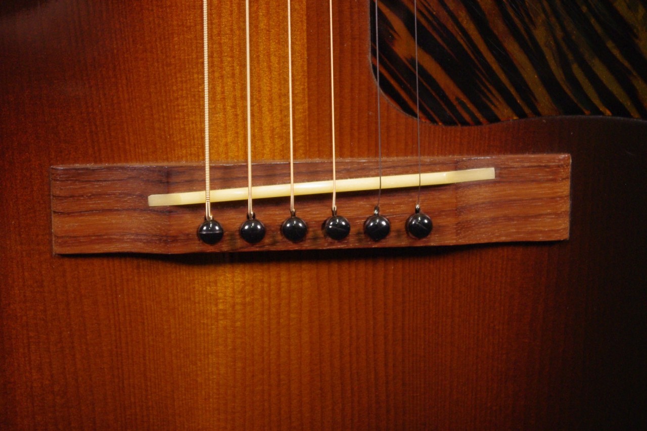 トップ サーマリーエイジド・アディロンダックスプルース、サイドバック マホガニー、指板・ブリッジ ローズウッド、オリジナルオープンバック3連ペグ、オリジナルファイヤーストライプピックガード、Xブレーシング、ロングサドル、