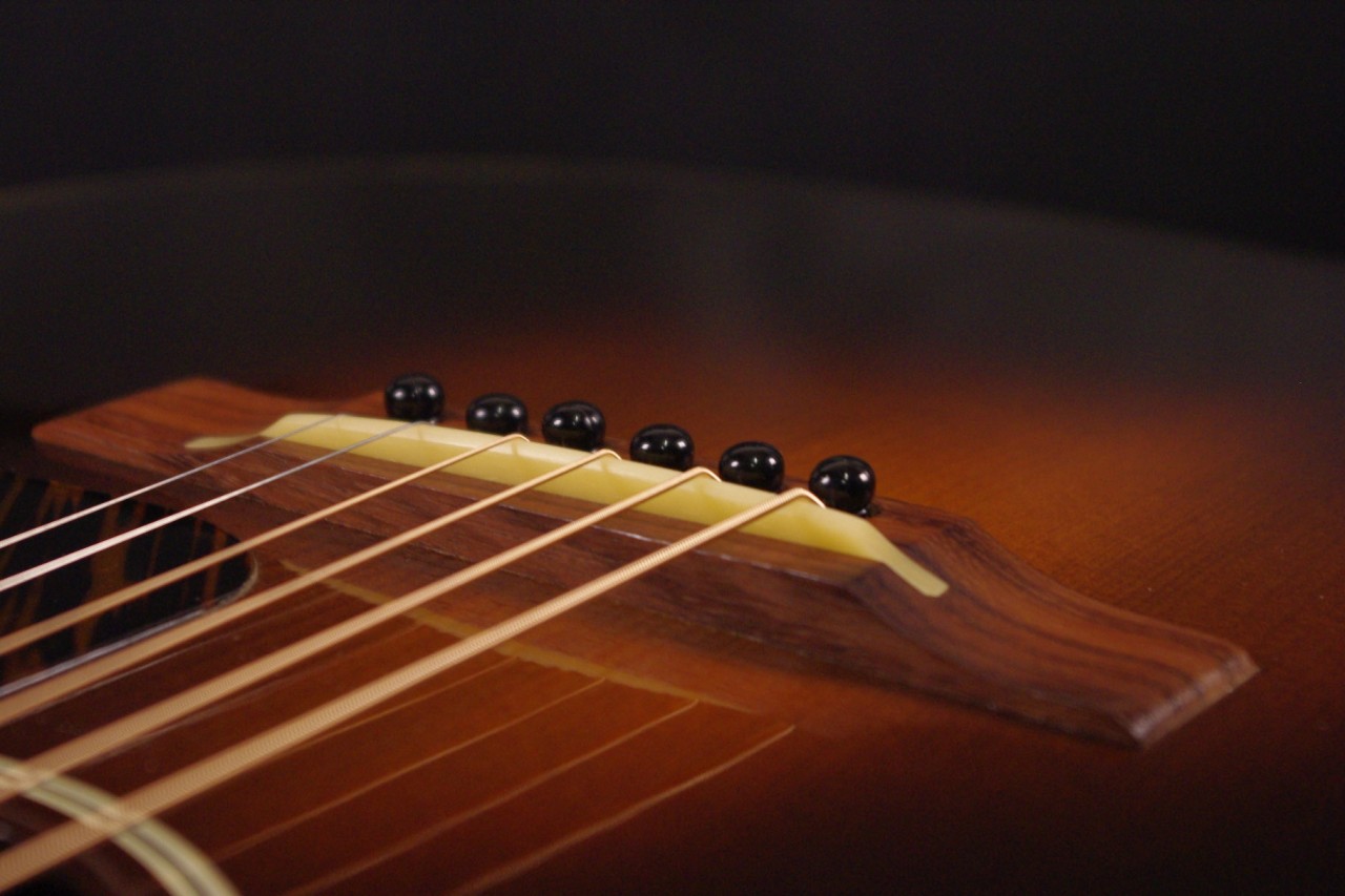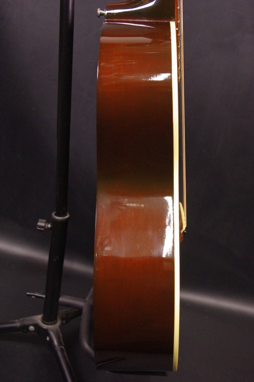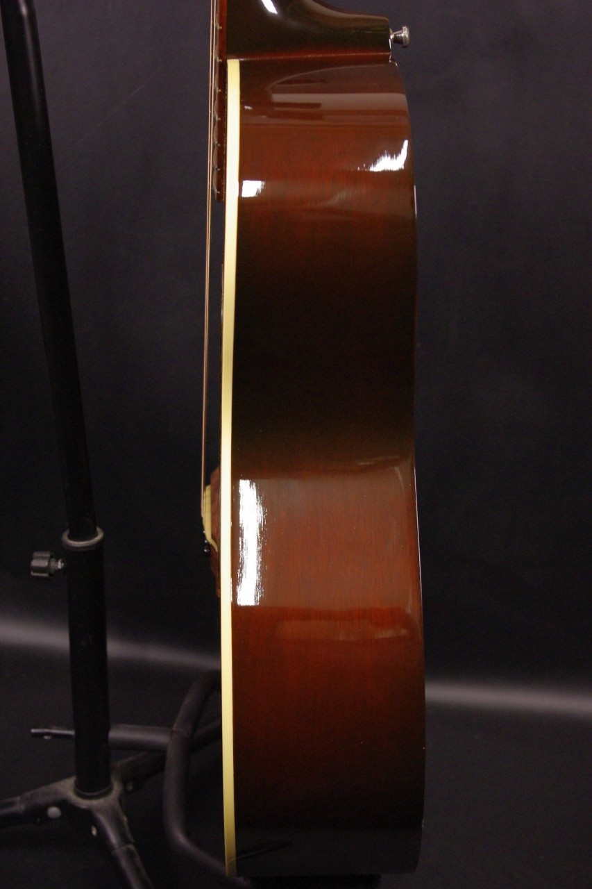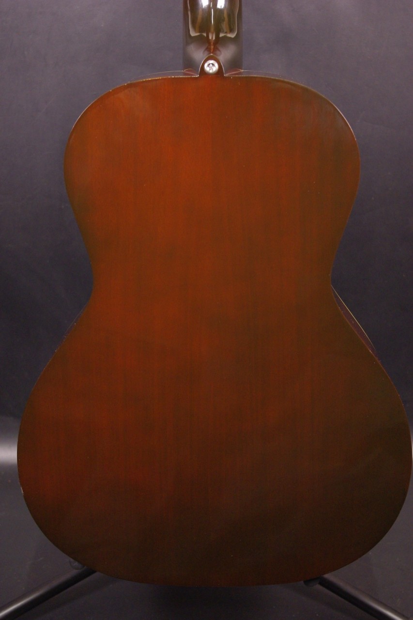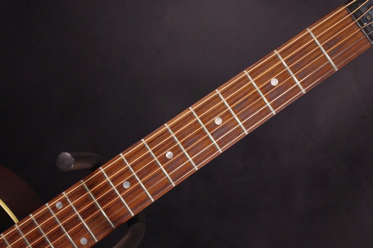 2017年製の1932 L-00 Reissueが入荷しました!トップサーマリーエイジド加工を施したアディロンダックスプルース、サイドバックにはマホガニーの厳選された材を採用、弦長は約638mm、ナット幅は約44mmのやや厚みのあるソフトVシェイプで戦前のL-00を見事に再現しています!!オープンバックの3連ペグやファイヤーストライプピックガードなど拘ったパーツ、30年代初期のサンバーストの雰囲気もまた堪りませんね!ペグ、ブリッジなど主なパーツはオリジナルで残っています。ネックヒールへはストラップピンが打っています。OBP Hybrid Element Large Doubleの貼付けタイプのピックアップが搭載されておりライブでもお楽しみいただけます!薄く弾き傷、所々に細かな打ち傷、使用感はありますが全体的に綺麗で演奏性、サウンドも優れています!ネックのアングルも理想的でトラスロッドの動作も問題なく機能します。フレットは5.6フレットくらいまで多少の減りは出ていますがまだまだ十分お使いいただけます。弦高は12フレット6弦側で約2.7mm、1弦側で約1.7mmの高さでハイポジションまで押さえやすく調整しています。サドル残もありお好みに合わせた微調整にもお応えいたします。アディロンダックスプルースの影響が大きくふくよかで甘さがあり軽いタッチで心地よく広がります!特にフィンガーピッキング中心で演奏される方におすすめ!!是非この機会にお試しください。レッドラインの入ったオリジナルハードケースが付属!
